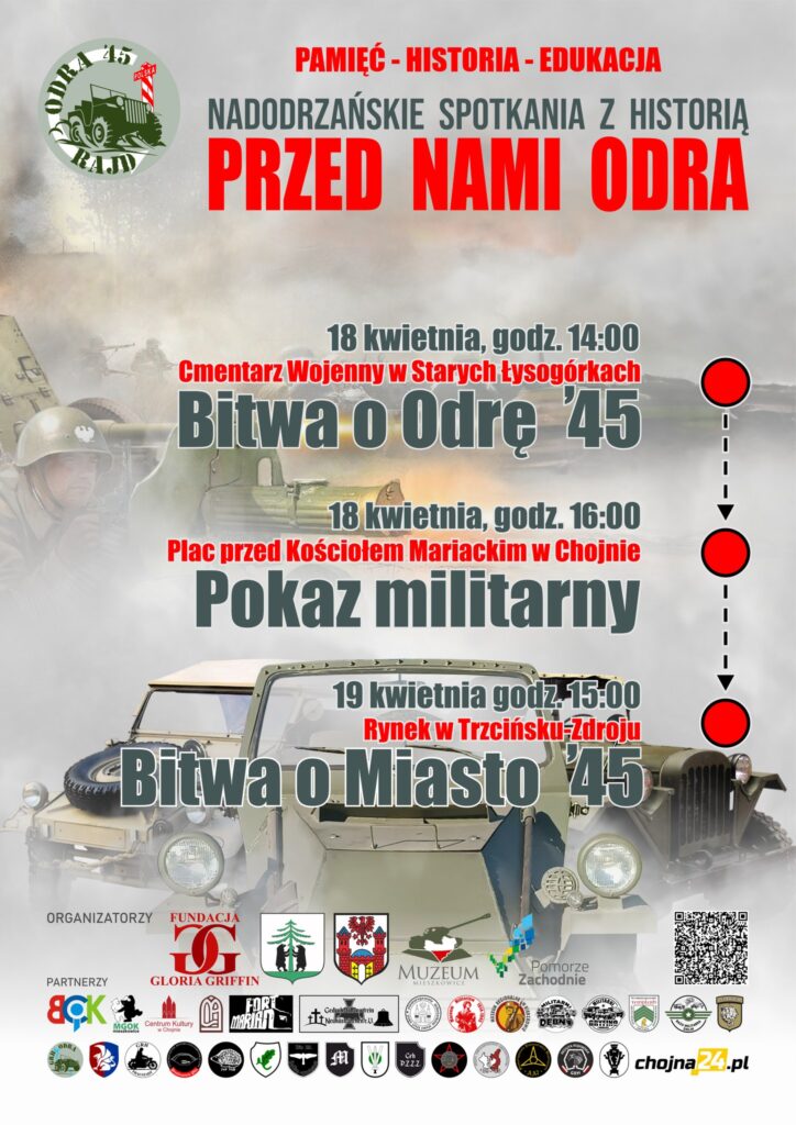 Zapraszamy na wydarzenie historyczne nawiązujące do 81 rocznicy Bitwy o Odrę 1945. W piątek i sobotę (18-19 kwietnia 2026 r.) w ramach nadodrzańskich spotkań z historią na trzcińskim Rynku odbędą się pokazy militarne oraz rekonstrukcja „Bitwy o Miasto”.