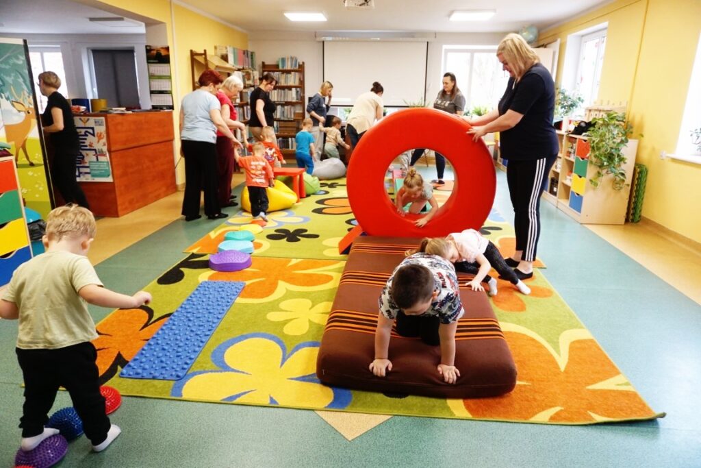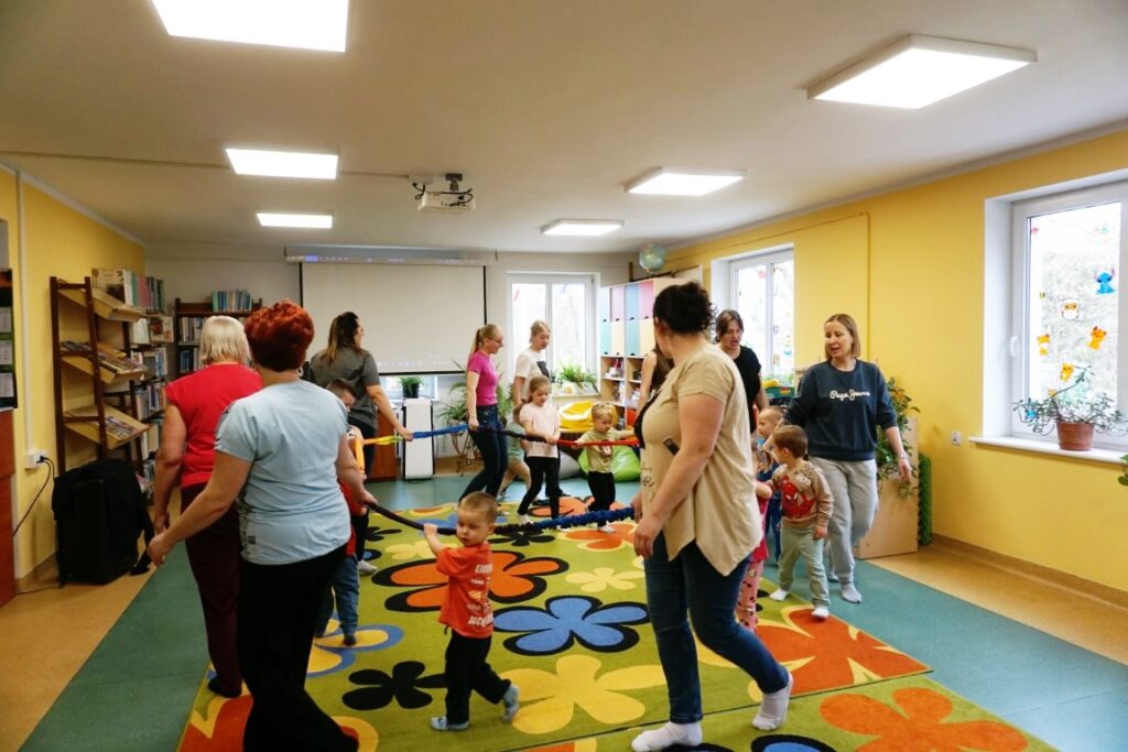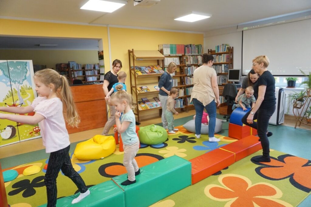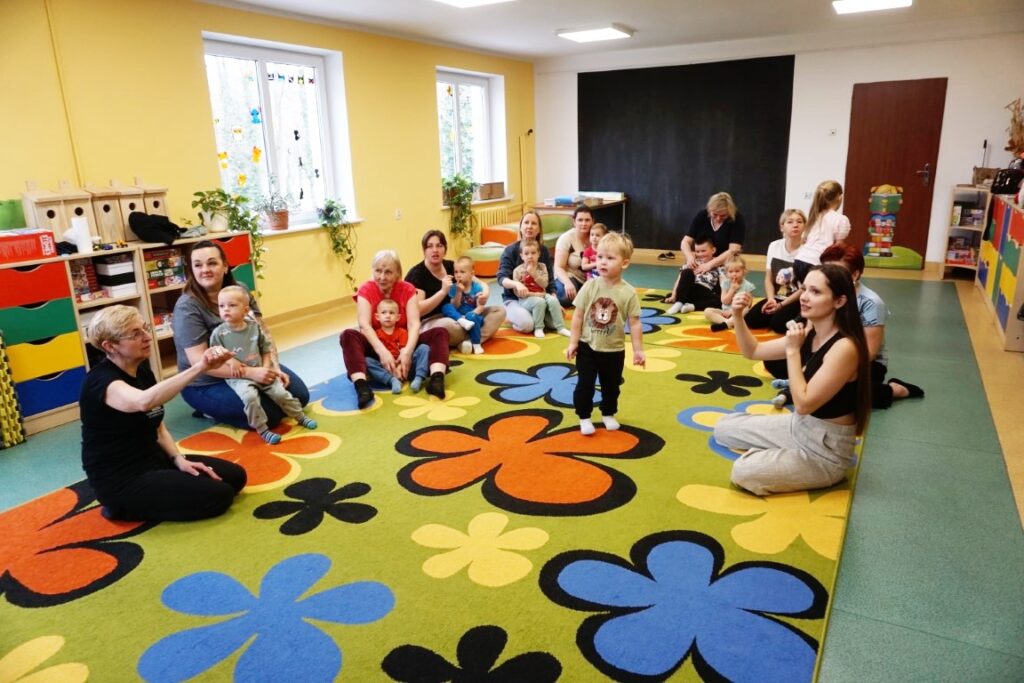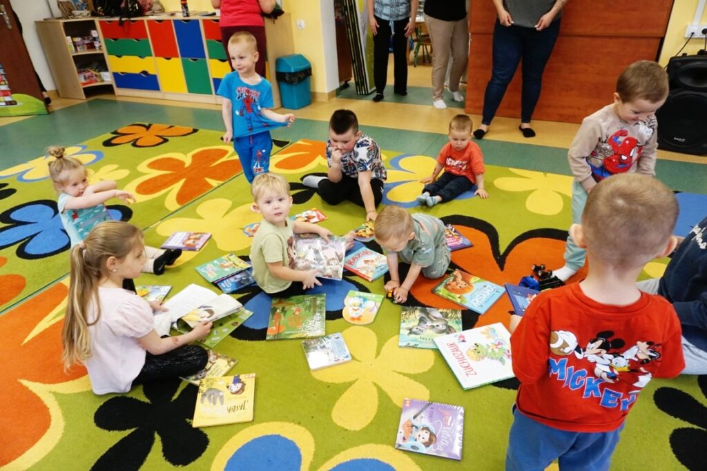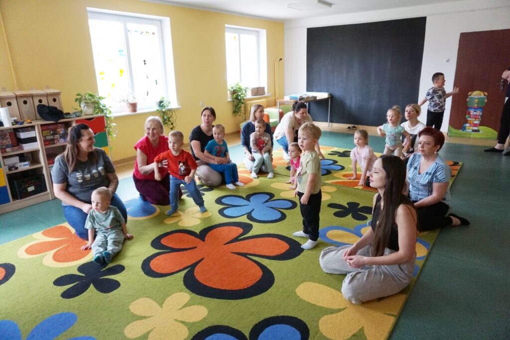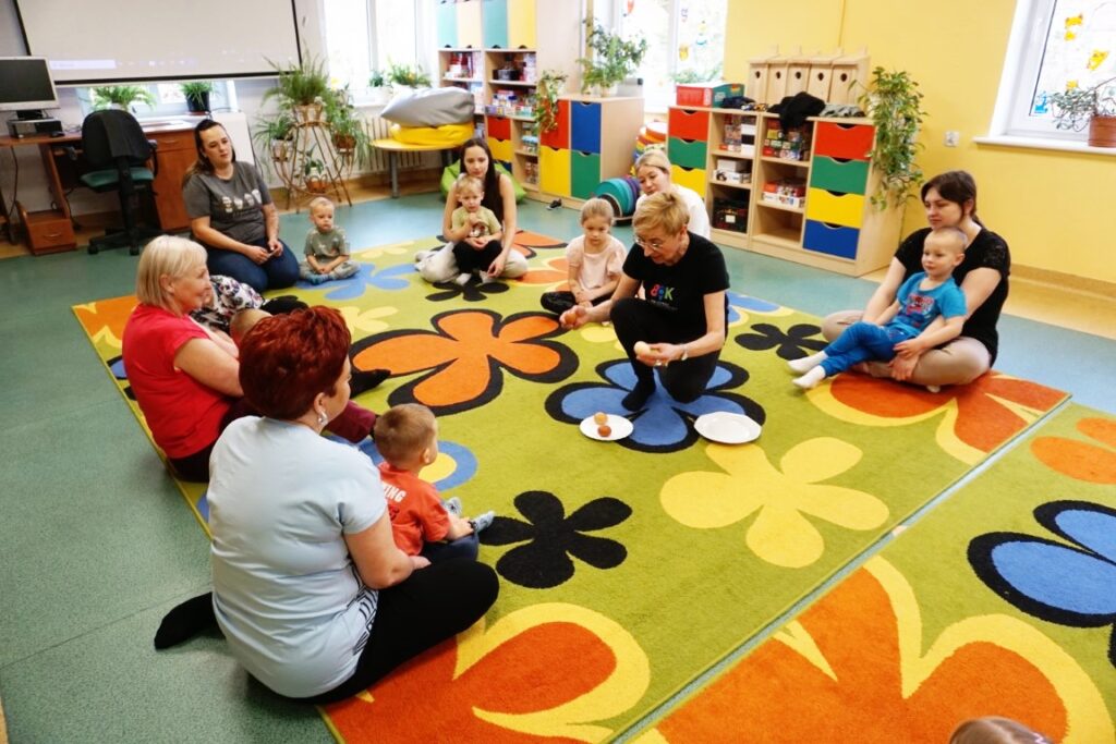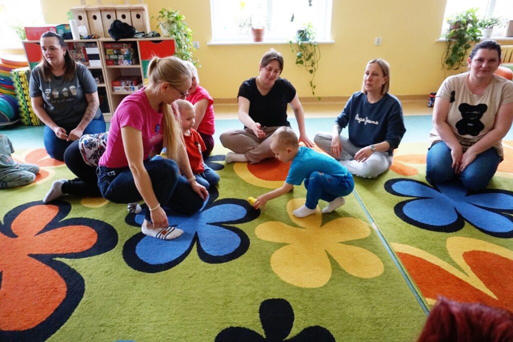 Dnia 31.03.26 odbyły się przedświąteczne zajęcia Akademii Malucha. Wiosna gdzieś się skryła i pogoda prawie zimowa się pojawiła. Dla dzieci i rodziców nie była to przeszkoda, by odwiedzić Bibliotekę, świetnie się zabawić i zgłębić tajemnicę jajka. Dzieci pobrykały, pohasały. Potem siadły na dywanie i czekały na następne działanie. Pani jajka położyła. Na dywanie zakręciła. Surowe kręcić się nie chciały a ugotowane żwawo wirowały. Pani w kole dzieci ustawiła i każdemu w rączkę łyżkę włożyła. Na łyżkę jajko położyła i podawać z łyżki na łyżkę zaleciła. Dzieci w skupieniu jajko podawały, by nie spadło uważały. Ono niesforne było i z łyżki zeskoczyło. Na dywanie się rozbiło i zabawę zakończyło. Inne na talerzyku wylądowało, co ma w środku pokazało. Białko i żółtko to było. Maluchy je dotykały, zalążka szukały. Pani butelkę wzięła i żółtko do środka wciągnęła.