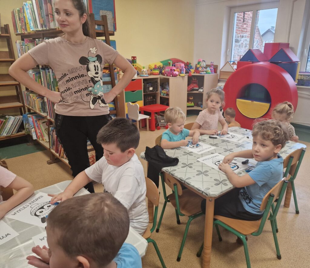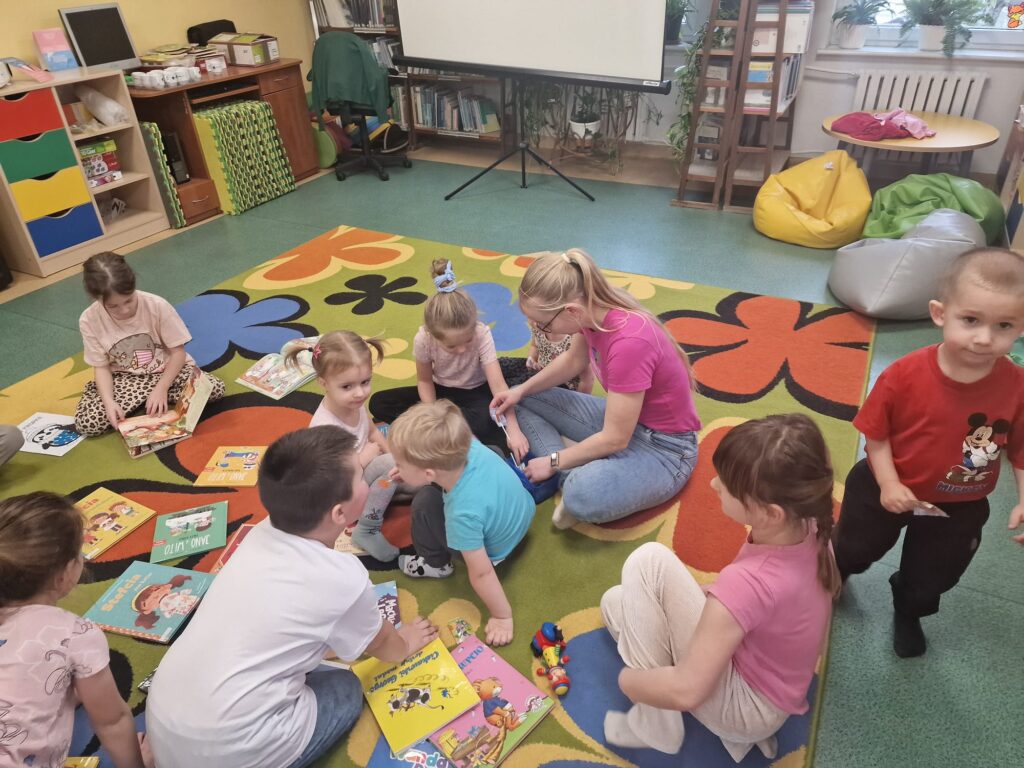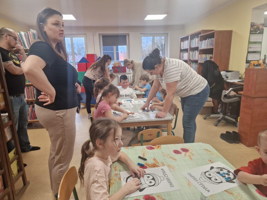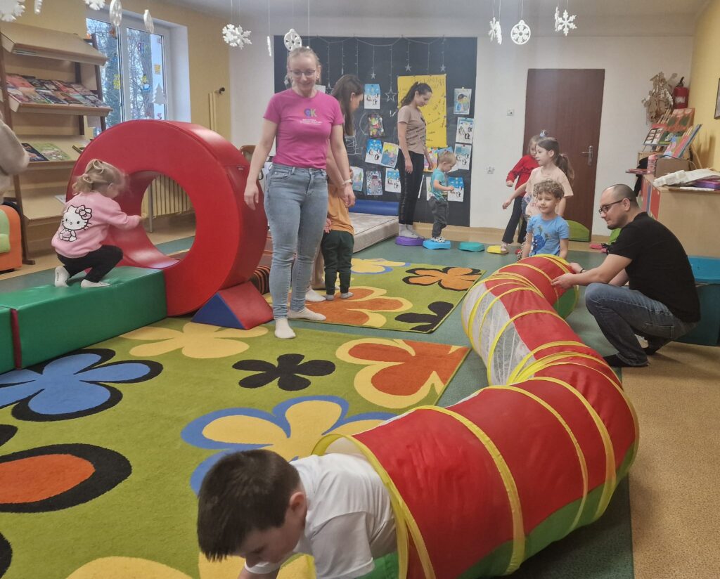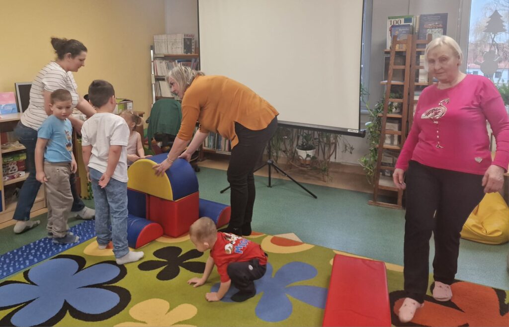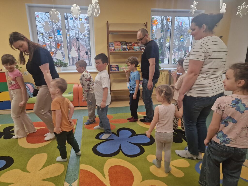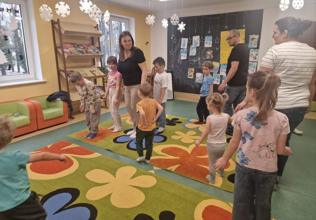 Dnia 3.02.25 w Bibliotece dla Dzieci miały miejsce zajęcia integracyjno- edukacyjne dla dzieci. W zabawach uczestniczyły także dzieci przebywające na zimowym wypoczynku w naszym miasteczku. Narzuciliśmy troszkę szybsze tempo. Ze strony dzieci nie było powodów do narzekań. Podskakiwaliśmy do sufitu. Wykonywaliśmy proste ćwiczenia fizyczne usprawniające całe ciało.