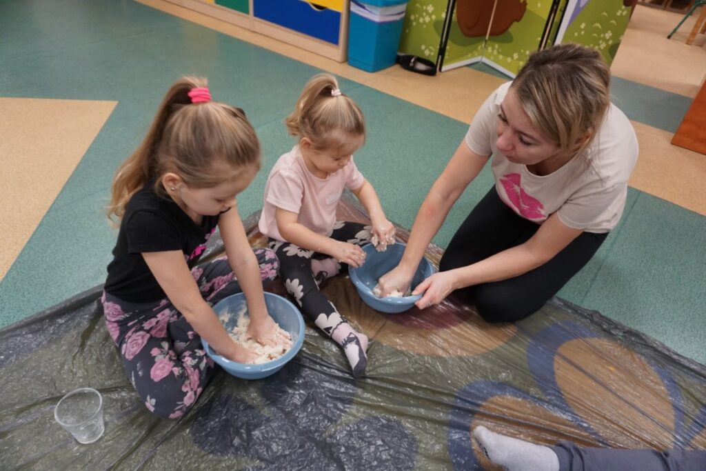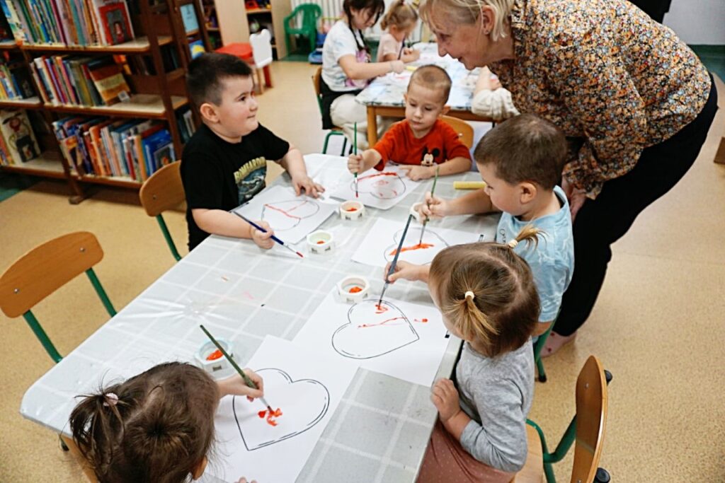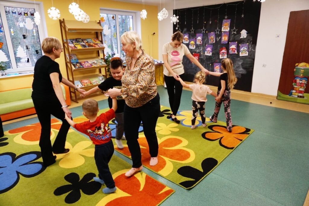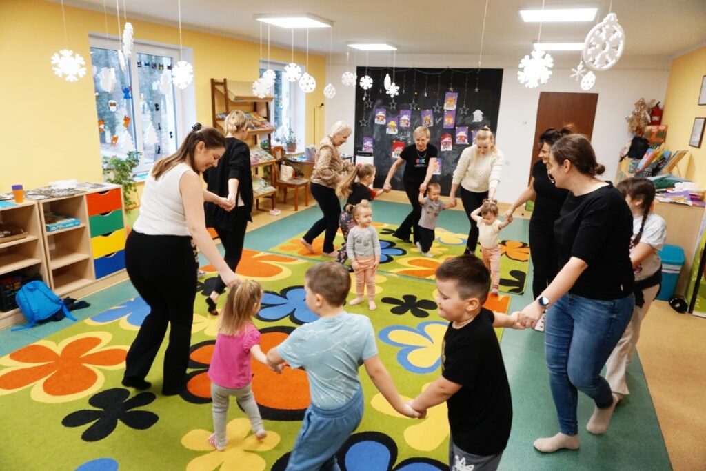 Dnia 10.02.26 odbyły się zajęcia Akademii Malucha. Dzieci nawet rączki sobie podały i w kole szybko wirowały. „Balonika” zrobiły i „bach” się przewróciły! Z uwagi na to, że 14 lutego już niebawem. A to przecież Walentynki, nie tylko dla dużych ale także dla chłopczyka i dziewczynki.