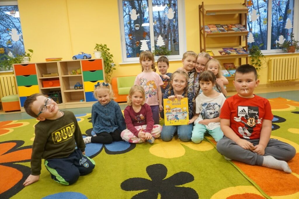 Dnia 14.01.2026 r. podczas zajęć „Od zabawy do czytania” Bibliotekę dla Dzieci odwiedziło 11 przedszkolaków. Były w doskonałych humorach, z dużą dawką energii. Najpierw miały miejsce zabawy integracyjne z wykorzystaniem si-gumy, które sprzyjały współpracy i budowaniu pozytywnych relacji w grupie. Potem były tańce do wesołych, skocznych piosenek i pokonywanie toru przeszkód. Po intensywnej aktywności ruchowej, przedszkolaki usiadły na dywanie, by wysłuchać opowiadania przygotowanego specjalnie dla nich pt. „Szkoła pani myszki. Co to jest szczęście?” Kimberley Kinloch.