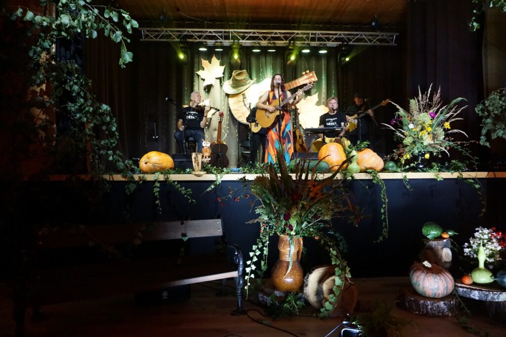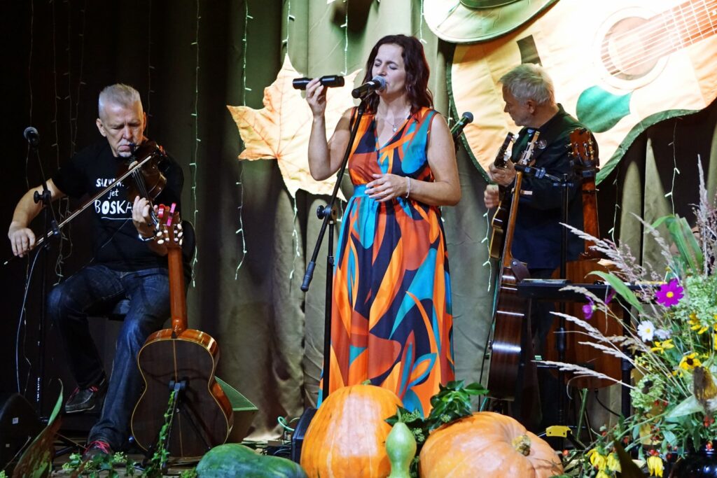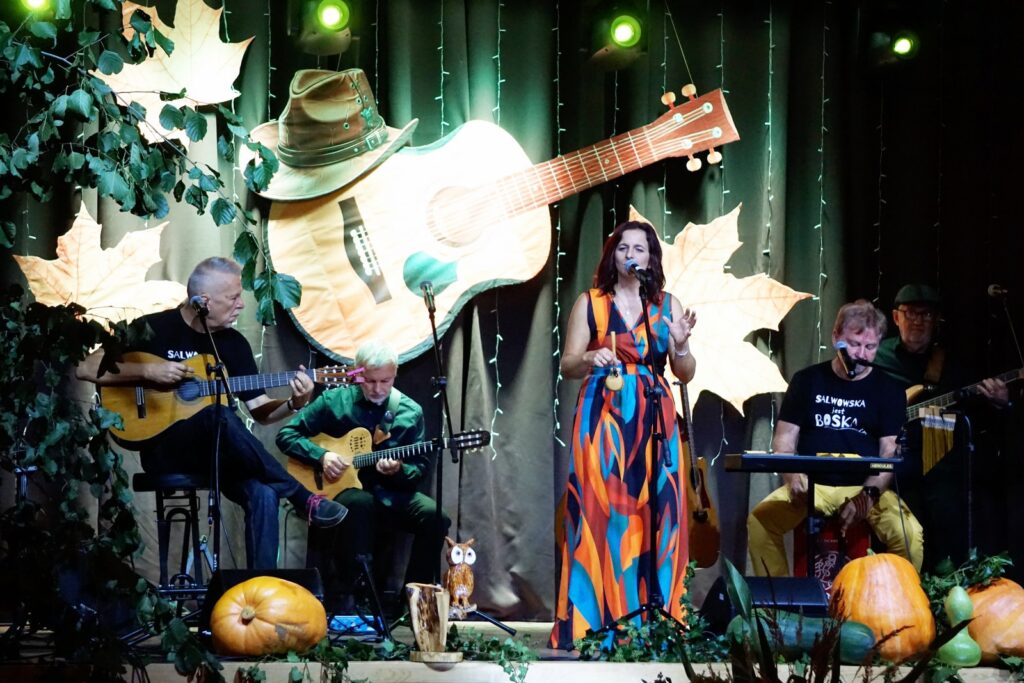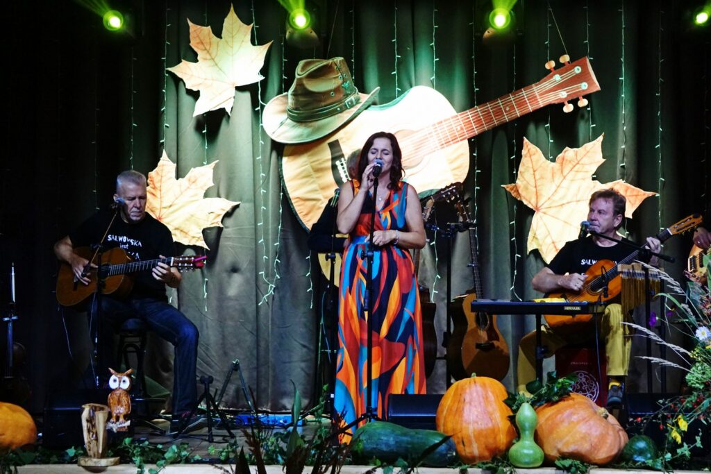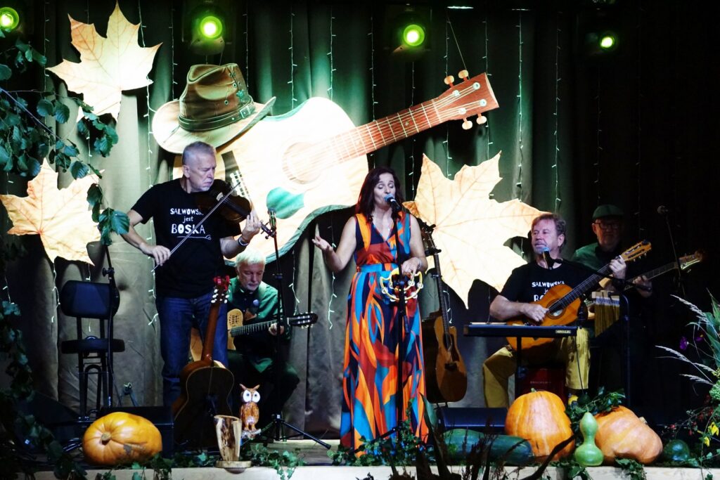 Stała się też inspiracją dla gitarzystki, piosenkarki Ireny Salwowskiej, która zaśpiewała o urokach jesieni. Piosenki, napisane i skomponowane przez artystkę, opowiadały o deszczowej aurze, z nutką nostalgii i zadumy. Inne opowiadały o rzeczach dla niej ważnych. Śpiewała z towarzyszeniem zespołu wrocławskich muzyków, w składzie: Sławek Kubas (skrzypce, gitara, śpiew), Zbyszek Pomian (gitara, instrumenty perkusyjne, śpiew), Zbyszek Kamionka (gitara basowa) i Ryszard Żarowski (gitary). Wśród kolorowych bukietów, pomarańczowych dyń, pożółkłych liści i kasztanów, publiczność wysłuchała niezwykle nastrojowego koncertu, delektując się domowymi wypiekami i kawą… Muzyka poruszała serca, słowa zapisywały się w umysłach. Oddziaływały, poruszając wrażliwe struny ludzkiej osobowości. Jednym słowem, „Salwowska była boska!”.