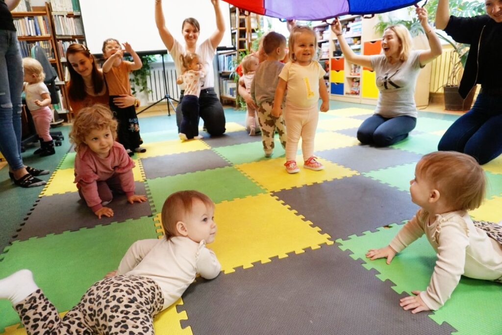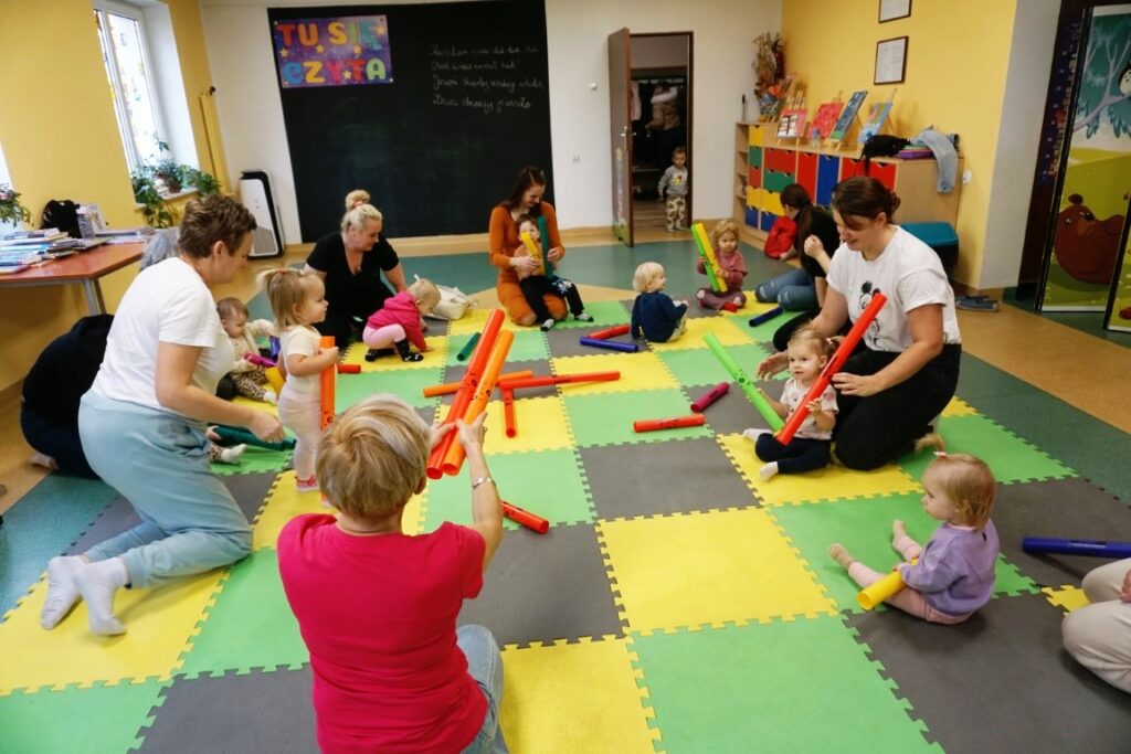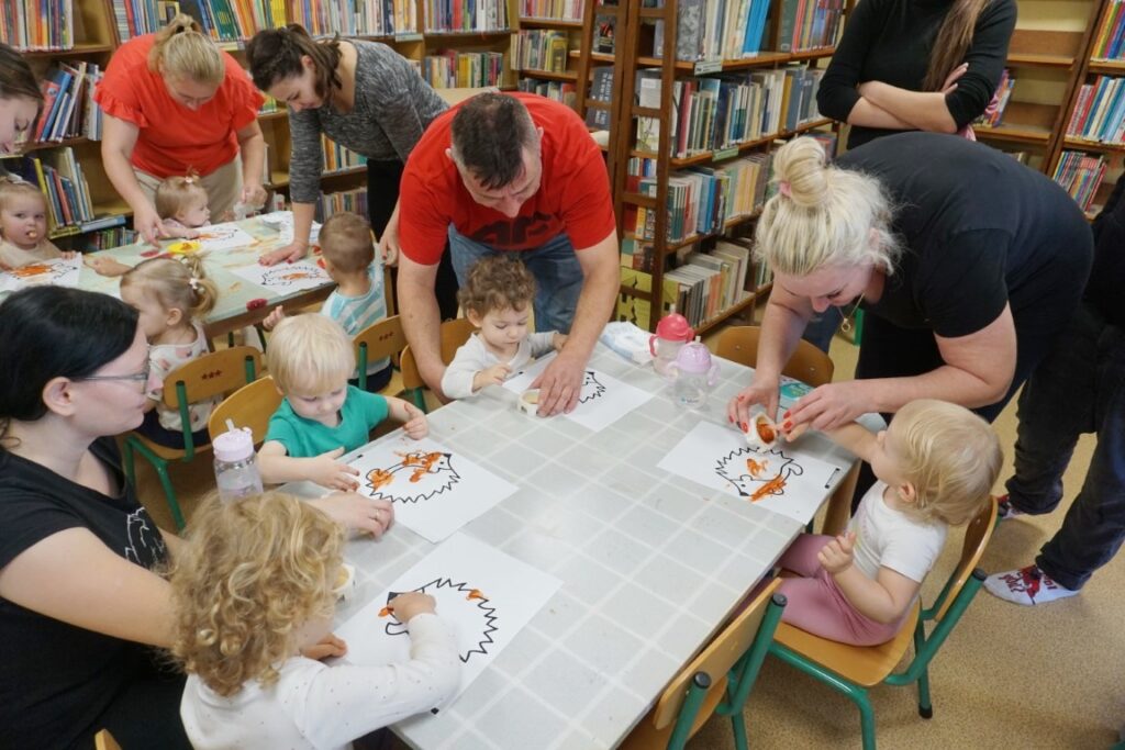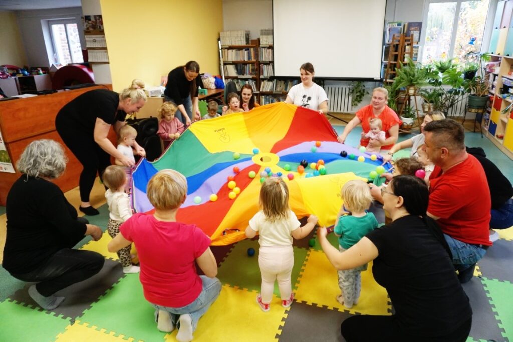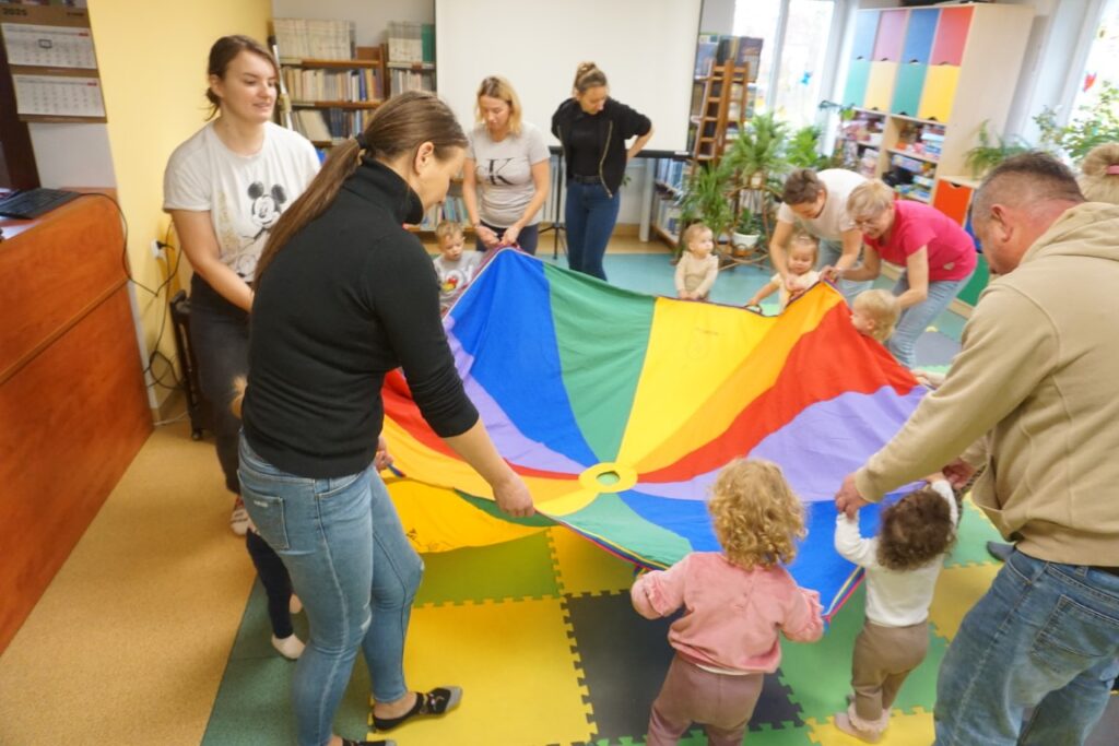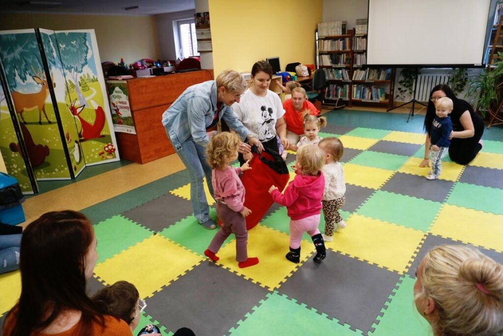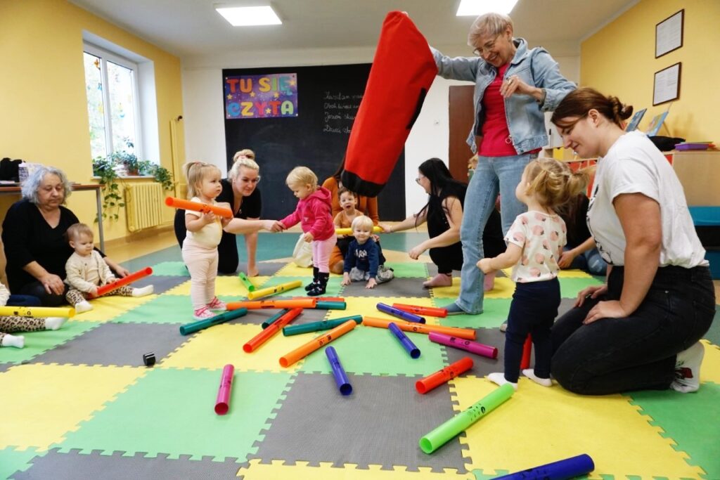 Dnia 12.11.25 Bibliotekę odwiedziły małe smyki. Grupa znowu zwiększyła swoją liczebność. Dzieci, zazwyczaj przychodzą w pogodnych nastrojach. Ciekawe, co zaproponujemy i czym zadziwimy. Wszystkie usiadły i czekały. Nawet się nie przemieszczały. Gdy wybiła wyznaczona godzina, przy kontuarze czarny wór zobaczyły. Trochę się zdziwiły, gdy z worka rurki się wydobyły. Kolorowe były i bam, bam robiły.