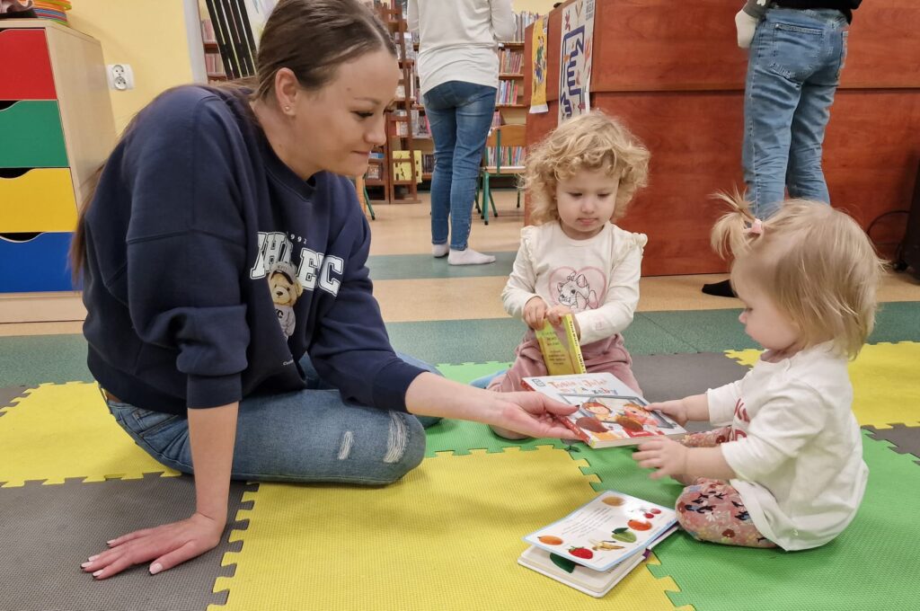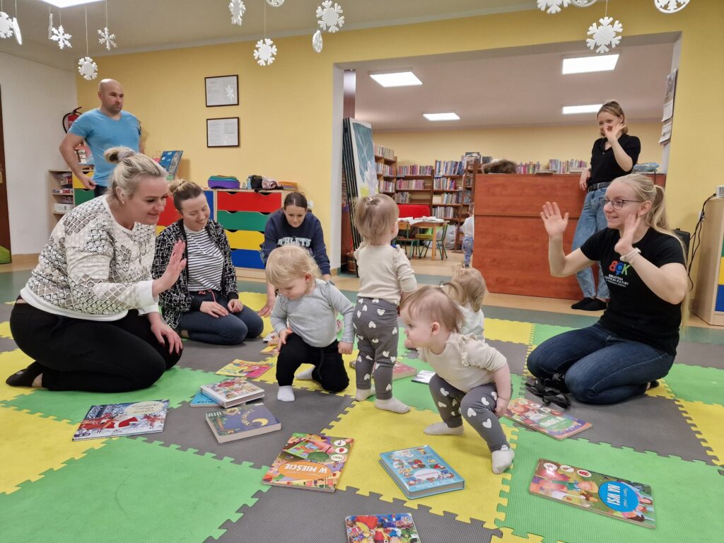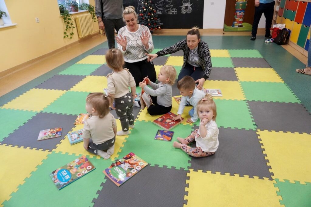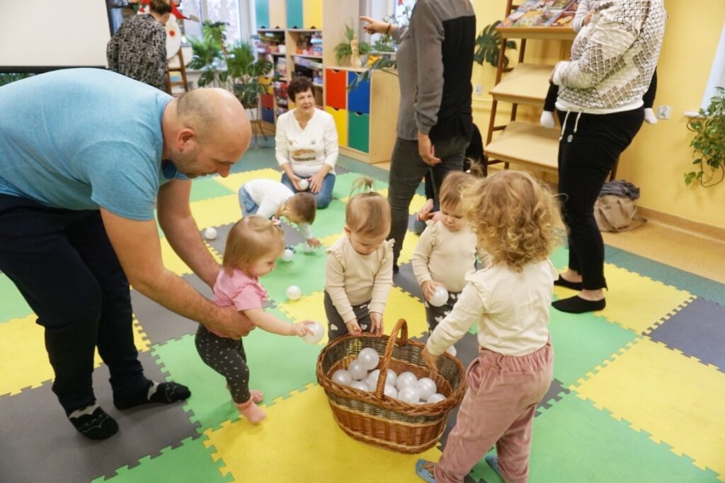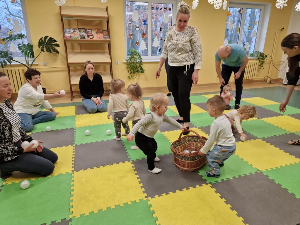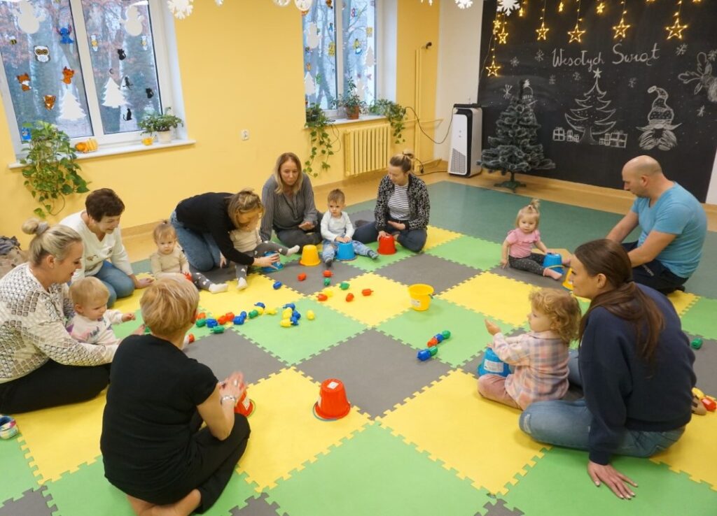 Dnia 17.12.2025 odbyły się, ostatnie w tym roku, zajęcia z maluszkami- Molikami. Na dobry początek- zabawa klockami, wagonikami. Na wiaderkach, jak na bębnie, granie: ram pam pam, ram, pam pam…Potem do wiaderek klocków zbieranie…i do bączka wrzucanie. Szybkie porządkowanie! Po zabawie powitanie i następne działanie.