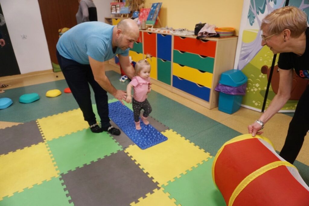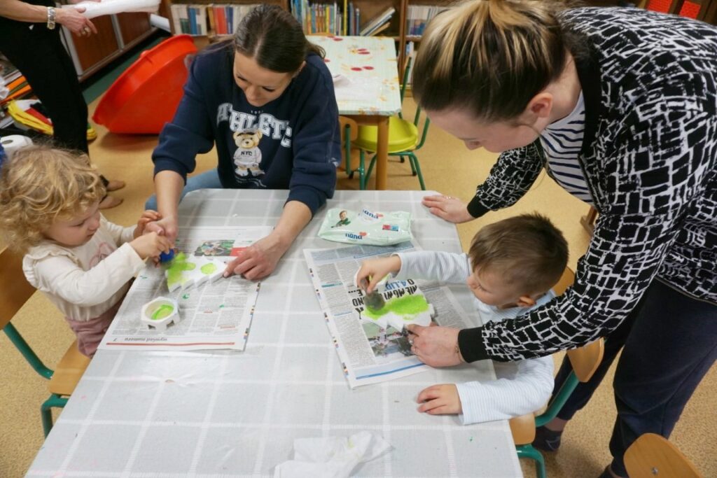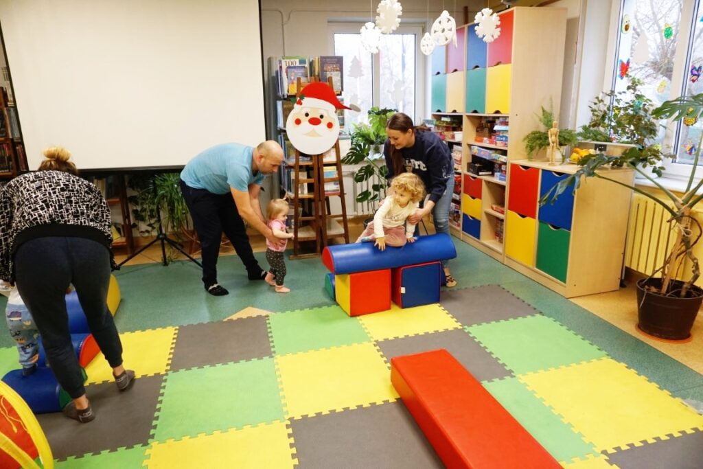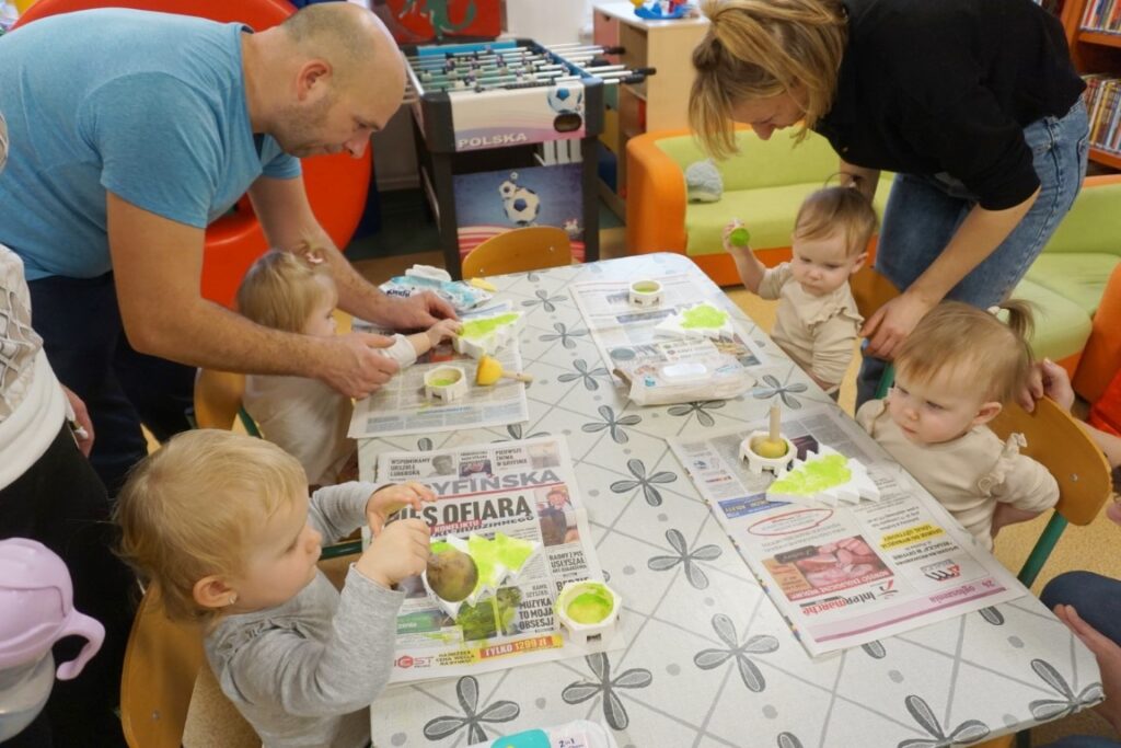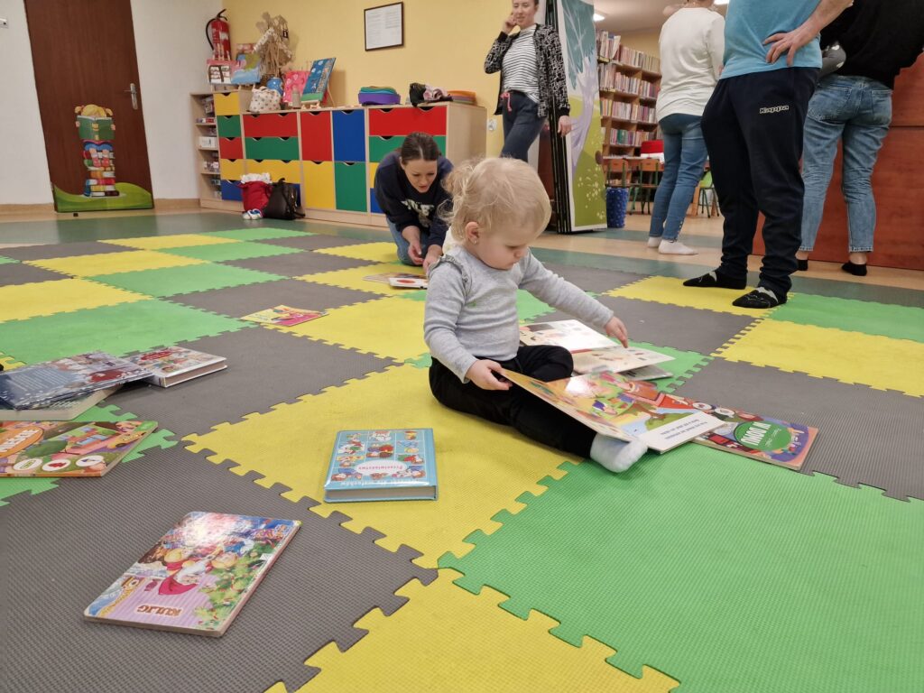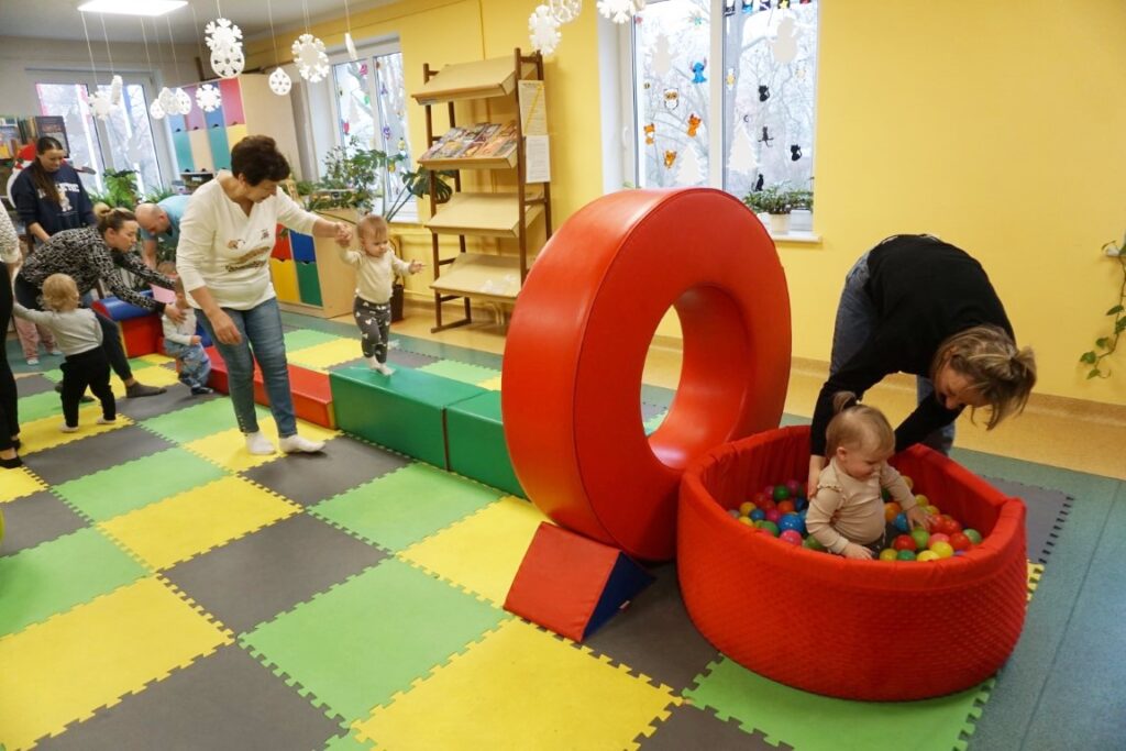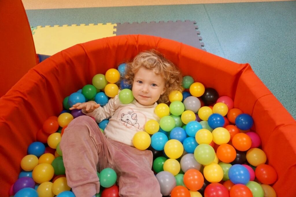 Na środeczku choinka stanęła. Gy dzieci ją zobaczyły, do niej podchodziły. Dotykały. Gałązki w rączki brały. Nawet igiełki gładziły. Kolorowe bombeczki zawieszały lub między gałązki wkładały. Gdy choinkę ubrały, wkoło tańcowały. Z góry, białe kulki wleciały. Dzieci jak, śnieżkami się nimi rzucały. Troszkę się po bawiły. Na koniec, wszystkie do kosza wrzuciły. Maluszki folię bąbelkową dostały. Pojedyncze bąbelki wciskały. Motorykę małą rozwijały. Jeszcze przeszkody pokonywały: mata kamyczkowa, wyspy sensoryczne, tunel, mega-bloki, opona, basen z kulkami… Motorykę dużą rozwijały. Jeszcze styropianowe choinki, gąbeczką malowały. Na koniec się pożegnały. Książki „prawie” czytały.Następne spotkanie z maluszkami- Molikami odbędzie się 7.01.26. Serdecznie zapraszamy! Nudzić się nikomu, na pewno nie damy!