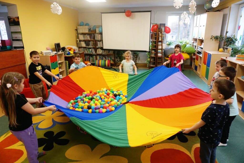 Dnia 18.02.2026 r. odbyły się zajęcia „Od zabawy do czytania” dla przedszkolaków. Rozpoczęło się od radosnej aktywności ruchowej. Wspólne piosenki oraz zabawy integracyjno-muzyczne sprzyjały budowaniu pozytywnych relacji w grupie. Dużą atrakcją okazał się ulubiony przez dzieci tor przeszkód, który pozwolił im rozładować energię i sprawdzić swoją sprawność ruchową.