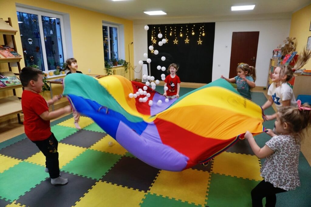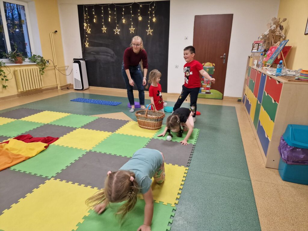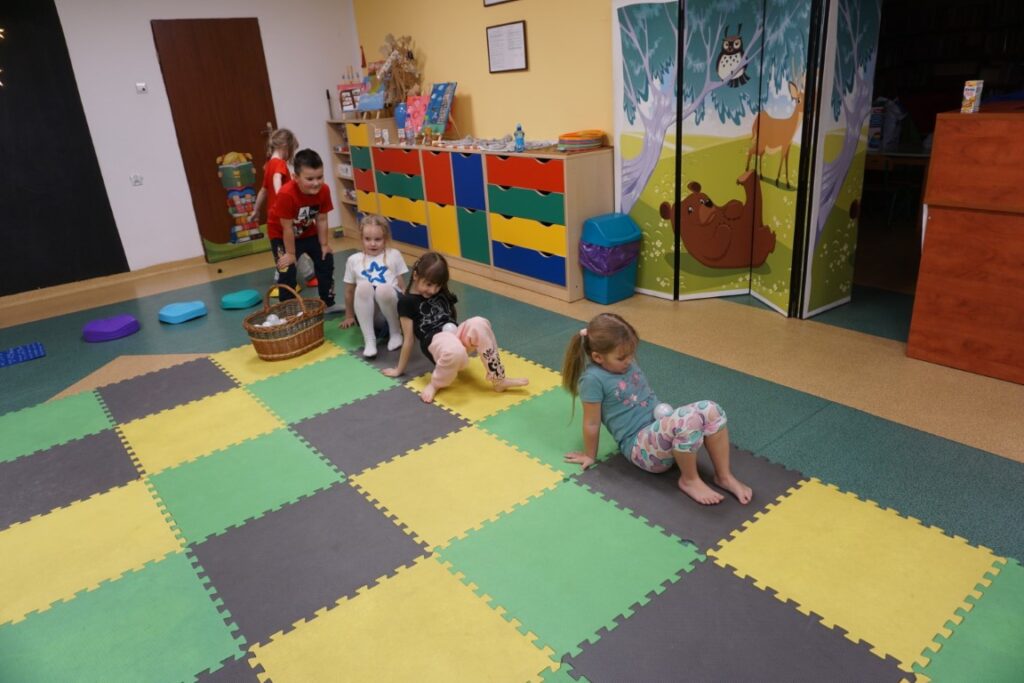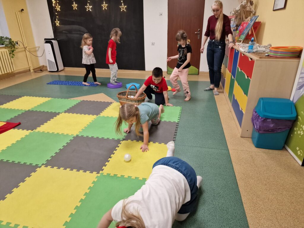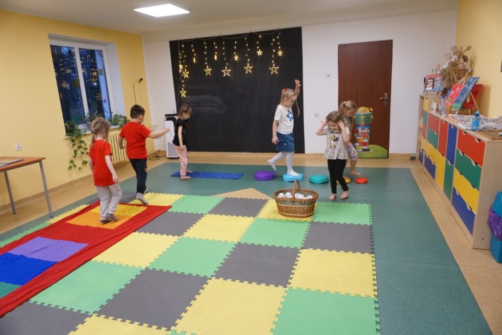 W środę, 10 grudnia 2025 roku, odbyło się spotkanie przedszkolaków z książką. Dzieci chętnie uczestniczyły w grach i zabawach integracyjnych przy muzyce. Śmiechu i spontanicznej radości nie brakowało. Szczególnym zainteresowaniem cieszył się tor przeszkód, który należy do ulubionych aktywności najmłodszych. Dzieciaki pokonywały przeszkody z ogromną starannością i zaangażowaniem. Były dumne ze swoich umiejętności. Uśmiechy były najlepszym dowodem na to, że wspólna zabawa sprawia im prawdziwą przyjemność.