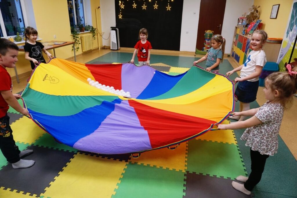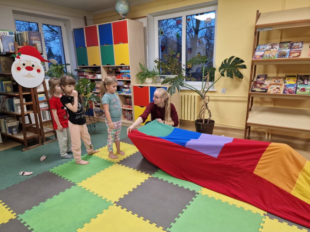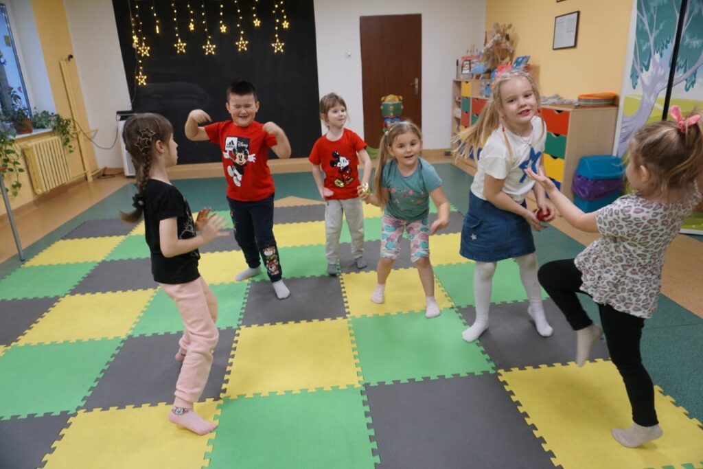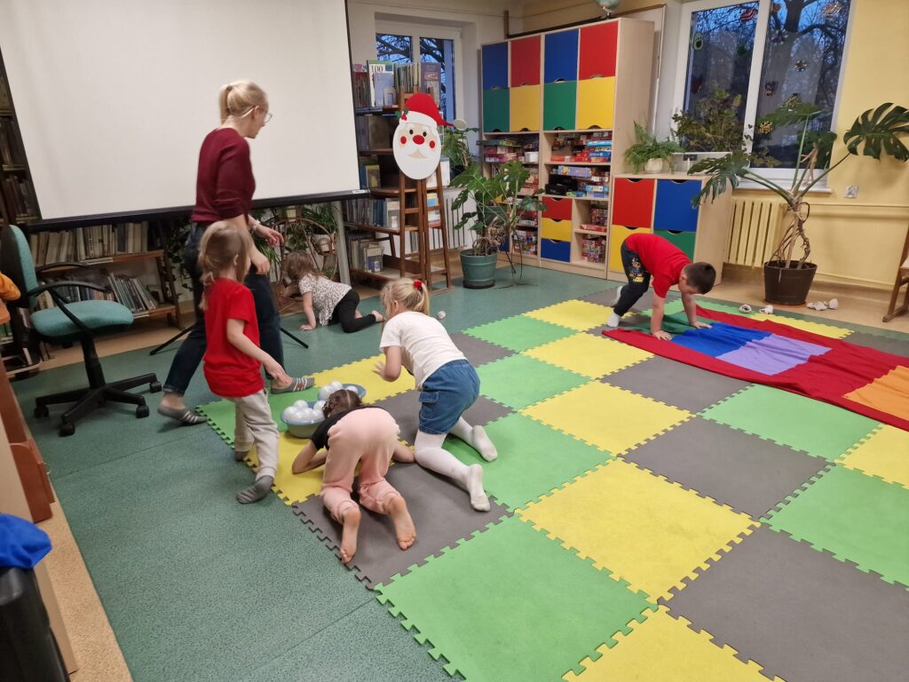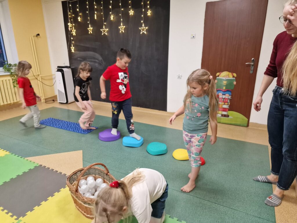 W środę, 10 grudnia 2025 roku, odbyło się spotkanie przedszkolaków z książką. Dzieci chętnie uczestniczyły w grach i zabawach integracyjnych przy muzyce. Śmiechu i spontanicznej radości nie brakowało. Szczególnym zainteresowaniem cieszył się tor przeszkód, który należy do ulubionych aktywności najmłodszych. Dzieciaki pokonywały przeszkody z ogromną starannością i zaangażowaniem. Były dumne ze swoich umiejętności. Uśmiechy były najlepszym dowodem na to, że wspólna zabawa sprawia im prawdziwą przyjemność.