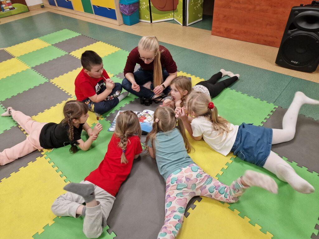 Radość dzieci udowodniła, że środowe spotkania w bibliotece są dla nich wyjątkowym czasem, gdzie wspólnie się bawią, słuchają opowieści, przeżywają emocje, dzielą się swoimi spostrzeżeniami na ważne tematy.