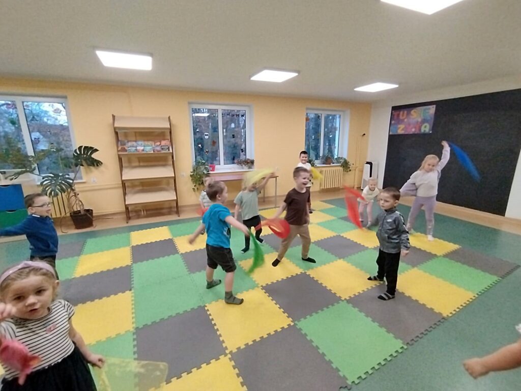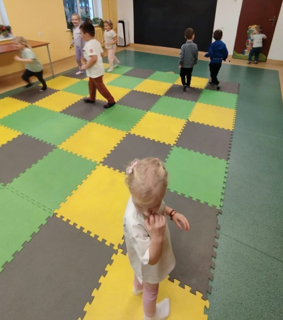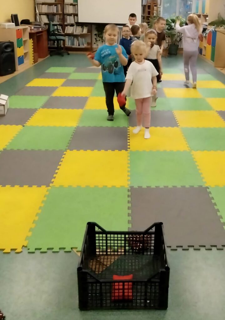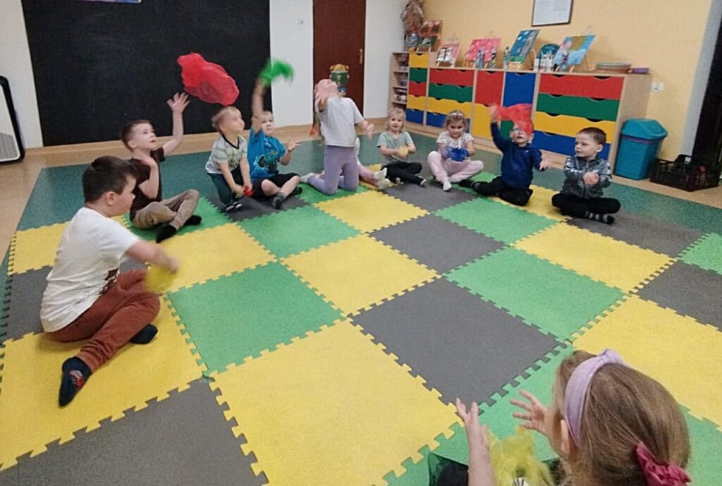 Dnia 19.11.2025 r. podczas spotkania klubiku czytelniczego, gdzie ruch przy muzyce łączy się z czytaniem i dyskutowaniem, klubowicze z entuzjazmem uczestniczyli w zaplanowanych aktywnościach. Poznali nowe, rytmiczne piosenki, które szybko przypadły im do gustu. Bez trudu opanowali ruch i rytm. Potem chętnie usiedli na piankowych puzzlach, moszcząc sobie wygodne i przytulne miejsca. W skupieniu wysłuchali opowiadania Uli Młodnickiej pt.: „Titek i sposób na zasypianie”. Jego bohaterem był Titek, sympatyczny, pełen energii i ciekawy świata, przedszkolak, który odkrył, że zasypianie wcale nie musi być trudne.