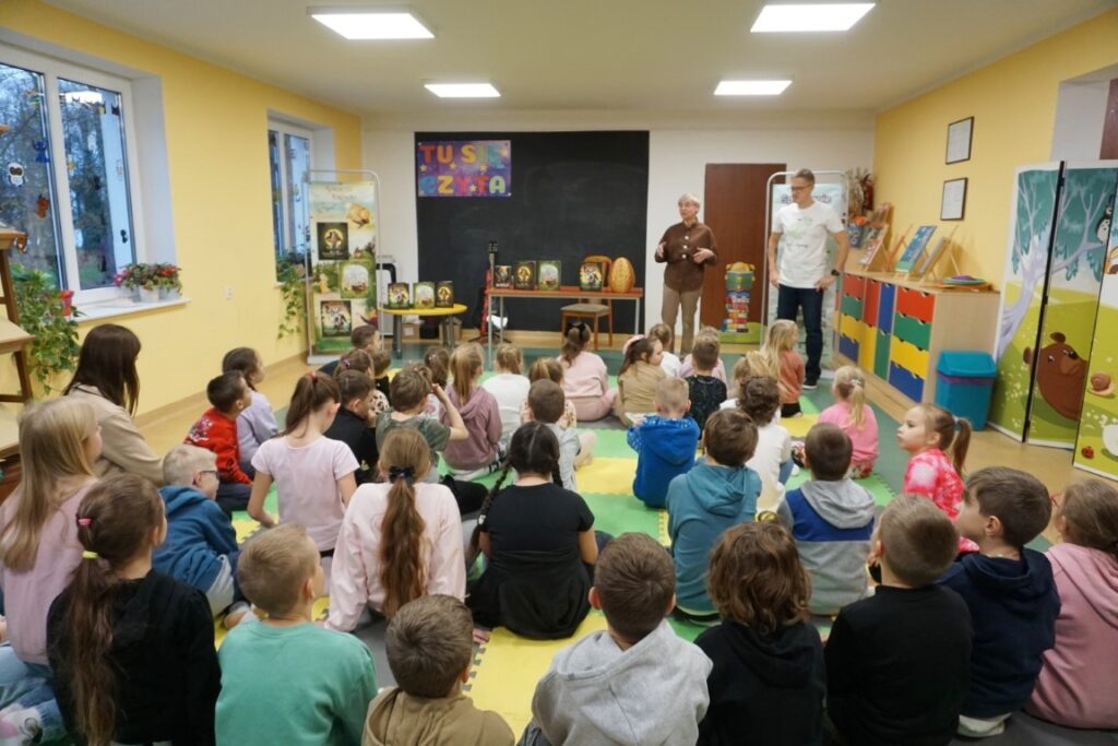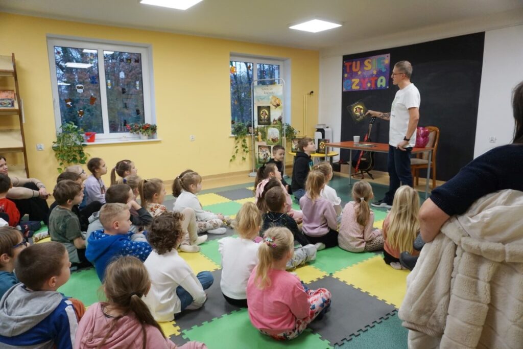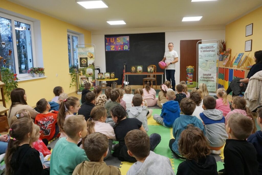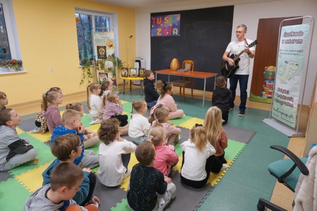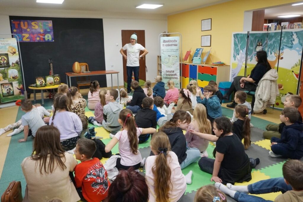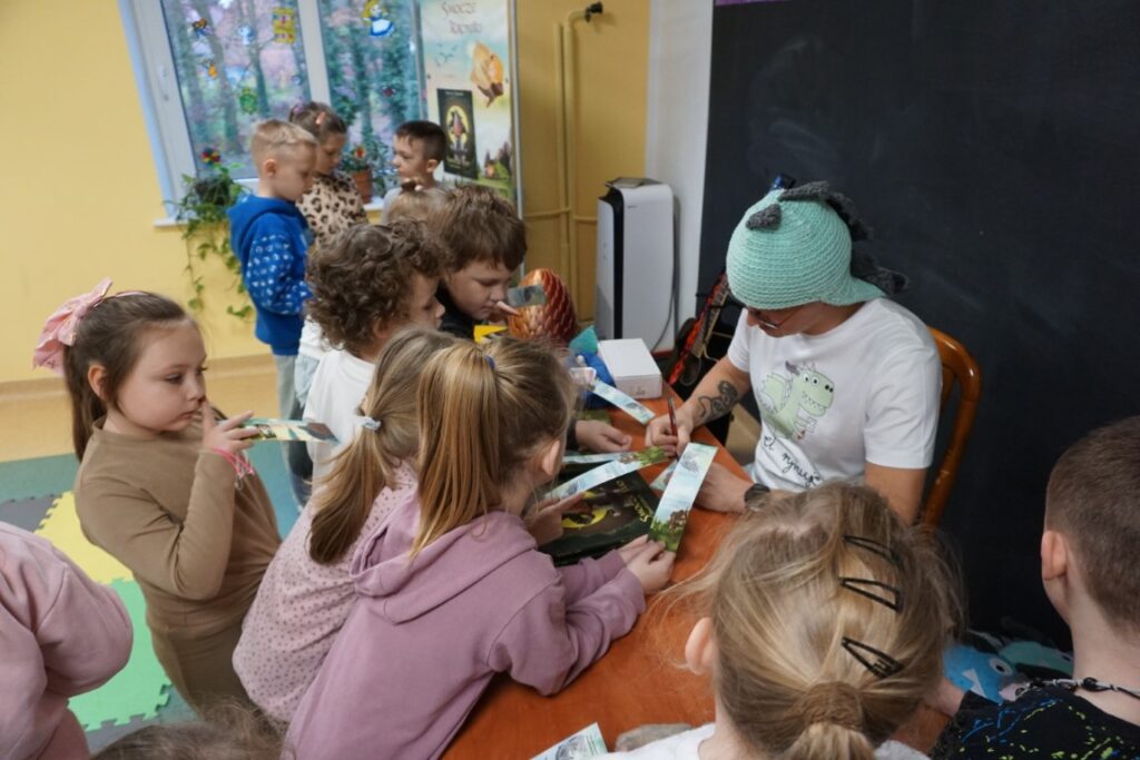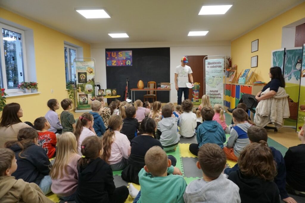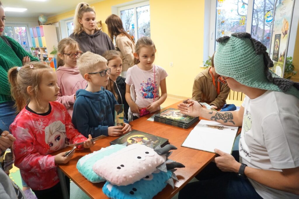 Dnia 18.11.25 w Bibliotece dla Dzieci miało miejsce ogniste, czytelnicze spotkanie Pawła Gołucha z uczniami klasy I i II SP w Trzcińsku-Zdroju. Od początku było niezwykle energetycznie. Autor znalazł sposób, by trafić do serc przyszłych czytelników i otworzyć wrota wyobraźni do zaczarowanego świata magii, radości i mądrości, które skrywają się w Smoczych Kronikach. Straszył smokami i potworami. Dzieci piszczały, ale w cale się nie bały! Były chętne do dalszej zabawy!