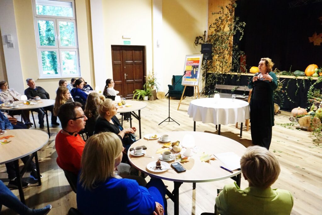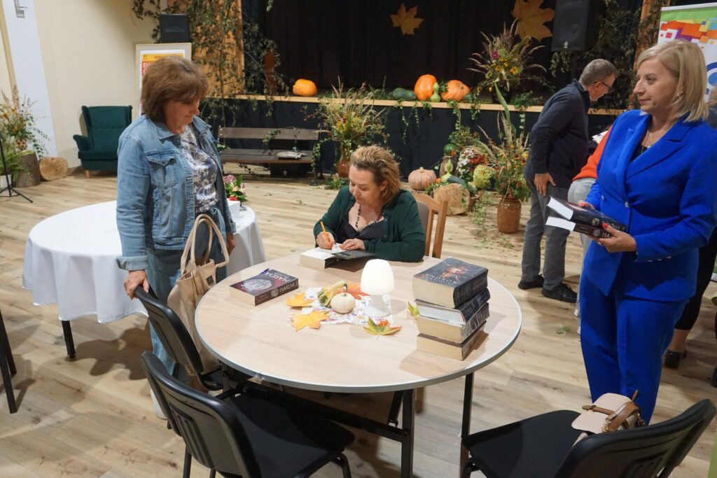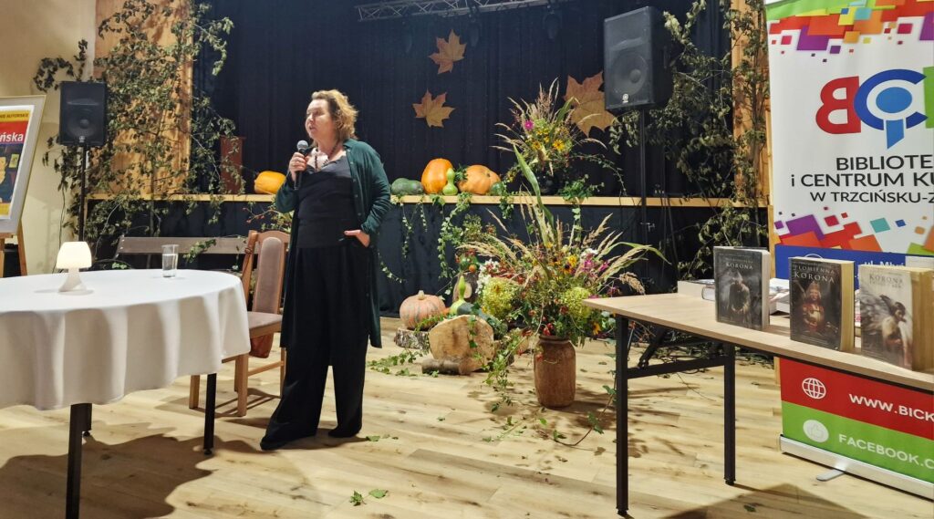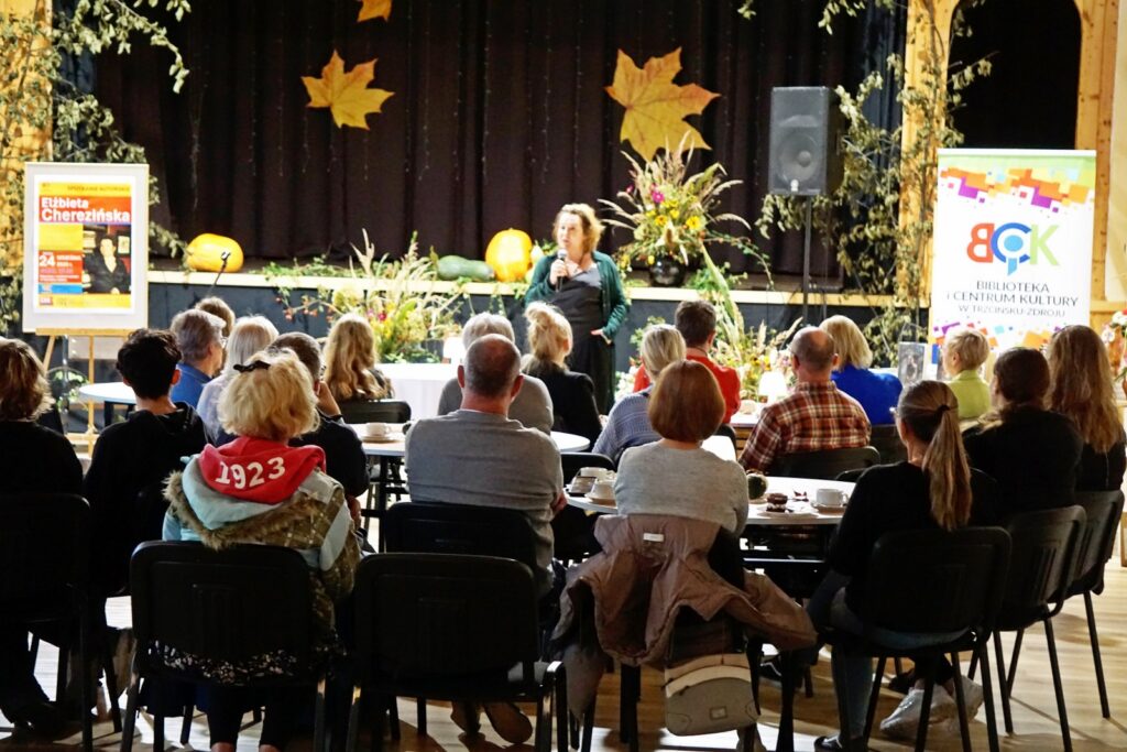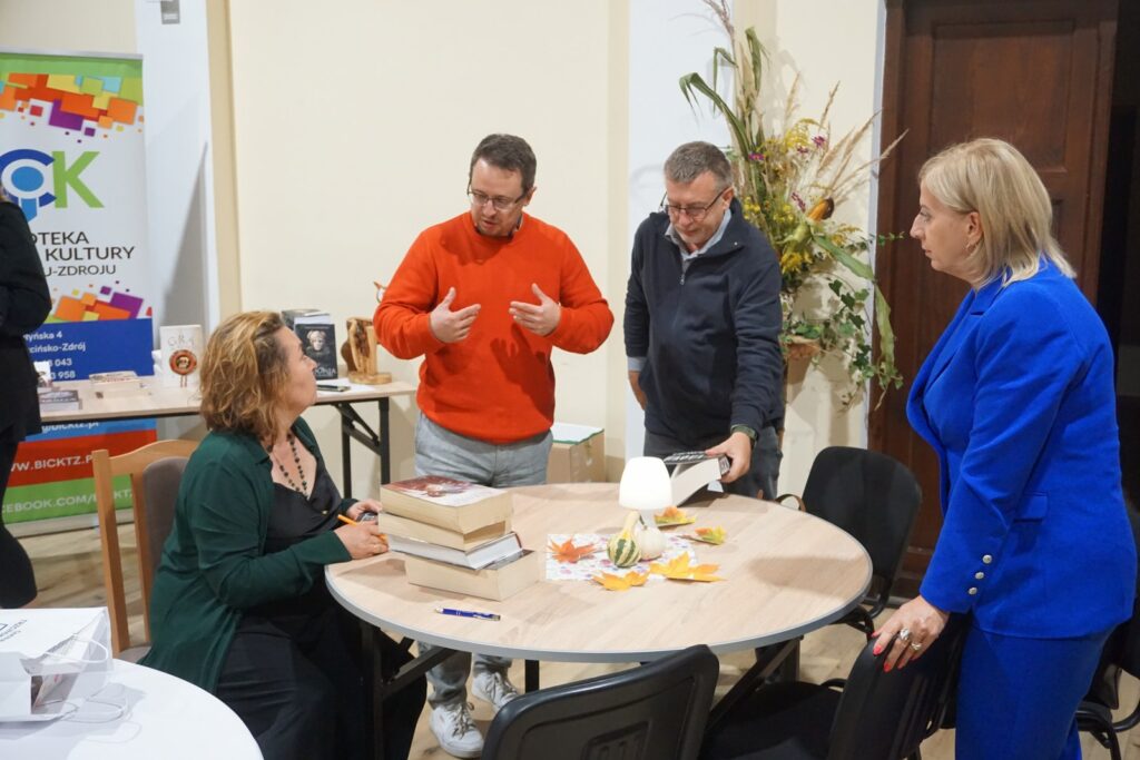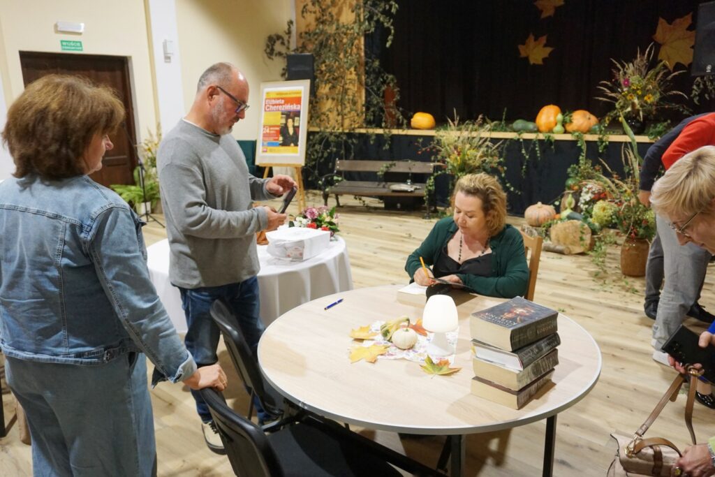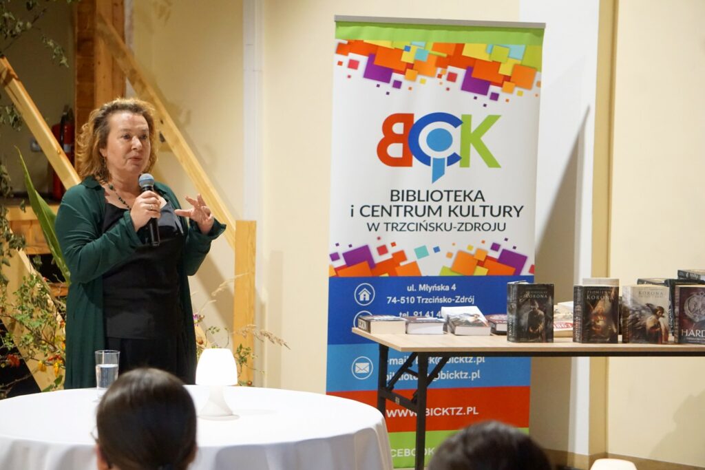 Dnia 24.09.25 odbyło się spotkanie autorskie Elżbiety Cherezińskiej z czytelnikami. Przygotowane miejsca szybko się wypełniły. W spotkaniu uczestniczyli: Sekretarz A. Dziedzic i Przewodniczący Rady P. Przytuła, regionalista A. Krywalewicz, członkowie DKK, młodzież szkolna i wielbiciele talentu E. Cherezińskiej. Na wstępie, Dyrektor BiCK R. Brzezińska przedstawiła znamienitego gościa. Zebrani dowiedzieli się, że autorka w swoich ks. łączy fakty historyczne z elementami fikcji, koncentrując się na silnych postaciach kobiecych i kluczowych wydarzeniach z historii Polski, Skandynawii i innych regionów. Zadebiutowała powieścią napisaną wspólnie z Szewachem Weissem-ambasadorem Izraela w Polsce, pt: „Z jednej strony, z drugiej strony”. Autorka pasjonuje się średniowieczem. Jej ulubioną dynastią są Piastowie, którym poświęciła pięciotomowy cykl Odrodzone Królestwo, Grę w kości i szczególnie cenioną, dwutomową opowieść o Świętosławie, córce Mieszka I, „Harda i Królowa”. W swojej twórczości wykorzystuje odkrycia archeologiczne, łącząc wiedzę historyczną z wciągającą narracją.