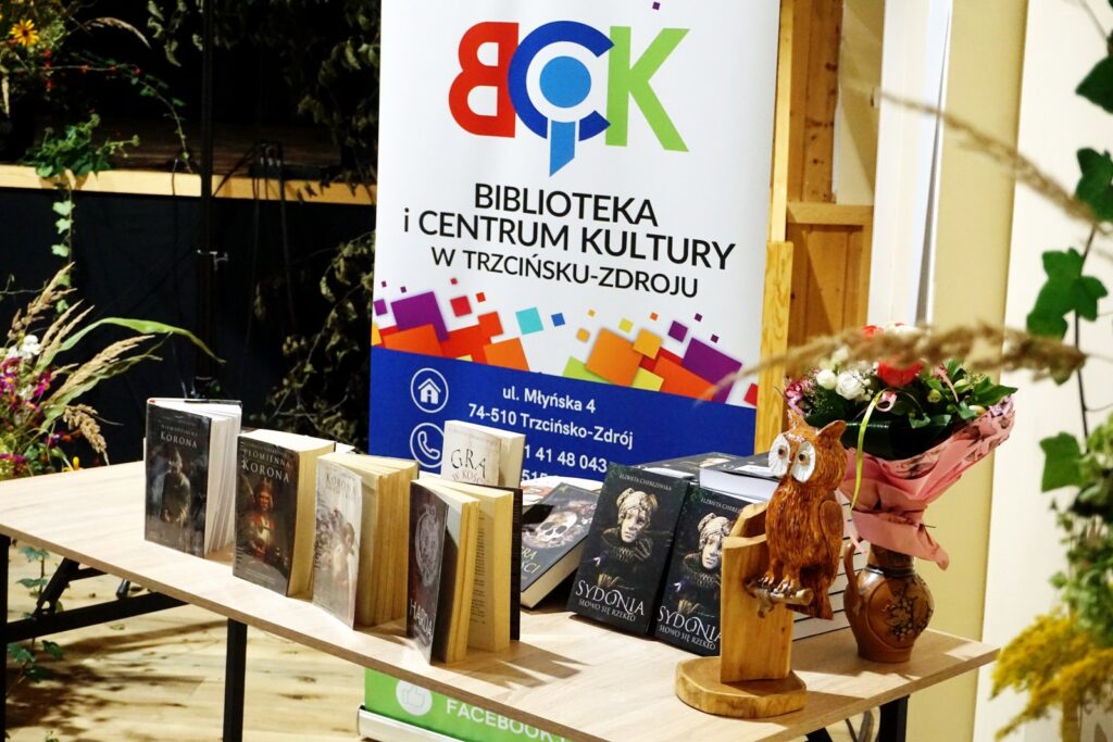 Spotkanie z Elżbietą Cherezińską dofinansowano ze środków Instytutu Książki pochodzących z dotacji celowej Ministerstwa Kultury i Dziedzictwa Narodowego, za sprawą działalności Dyskusyjnego Klubu Książki w Trzcińsku- Zdroju.