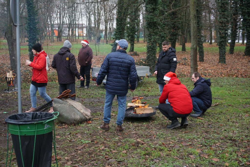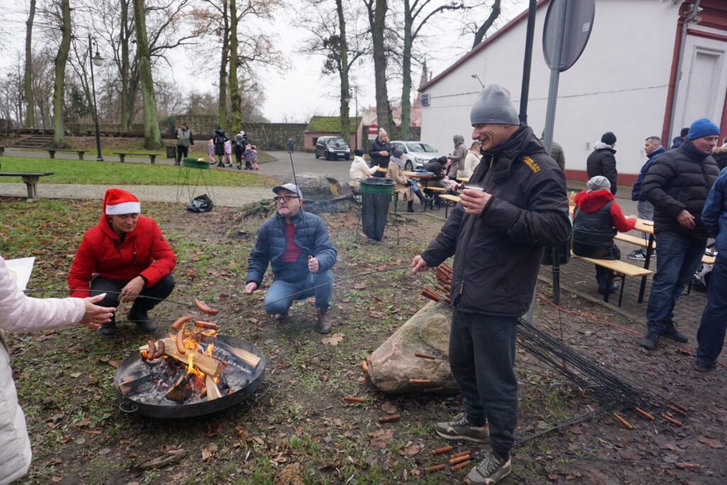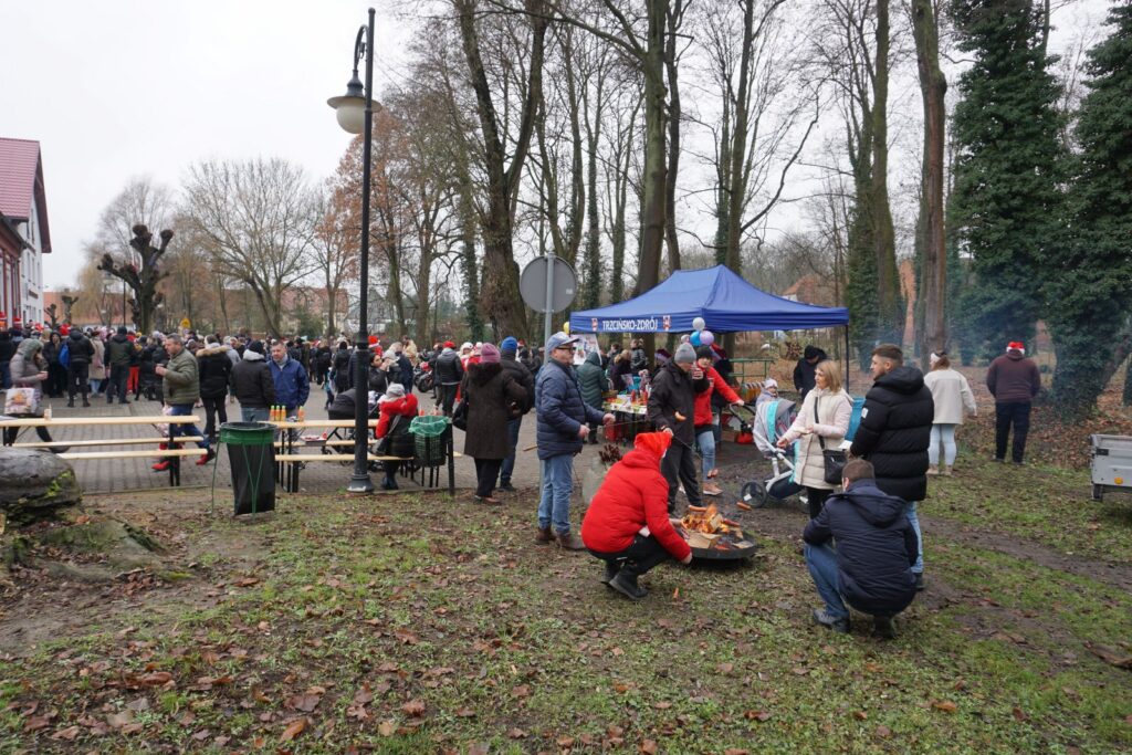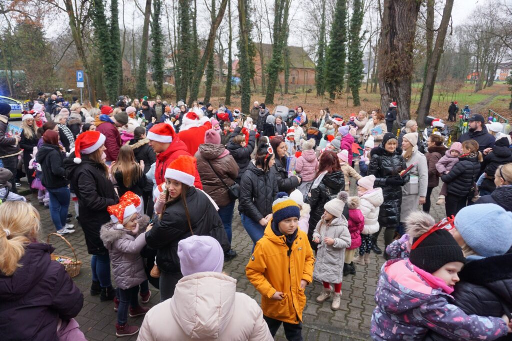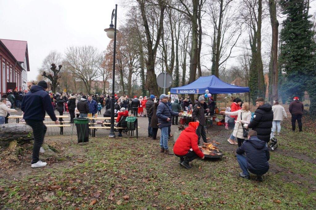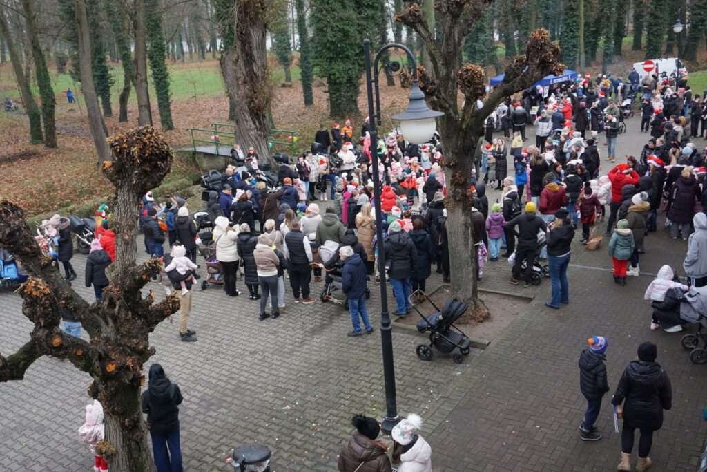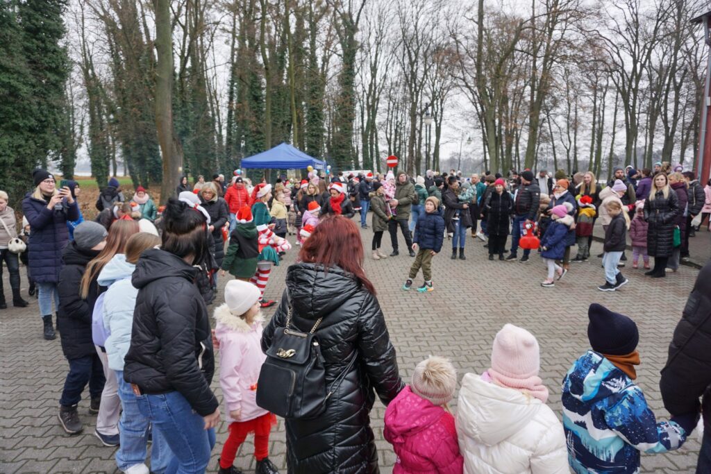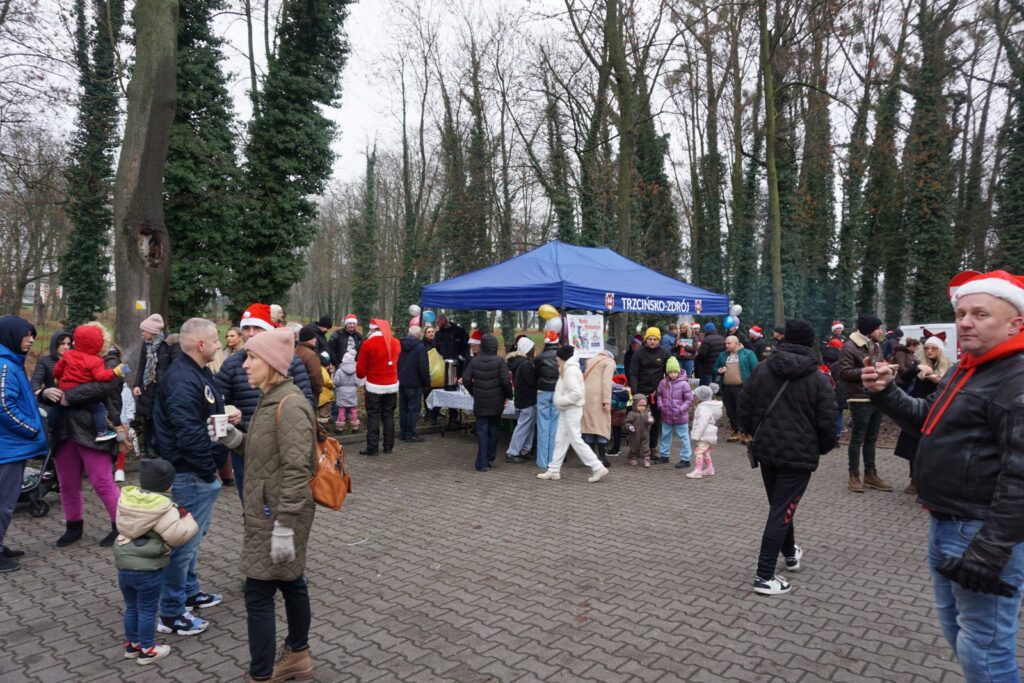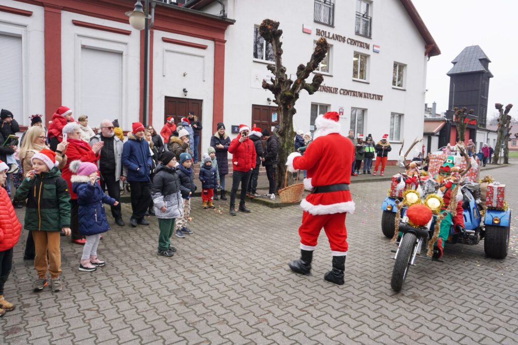 Przed budynkiem BiCK, atmosfera stawała się gorąca, mimo grudniowej aury. Dzięki Grupie Motocyklowej Trzcińsko-Zdrój wydarzenie rozpoczęło się od prawdziwie spektakularnego akcentu! Grupa Moto Mikołajów w świątecznych czapeczkach, eskortowana przez radiowóz policyjny oraz quady OSP, uroczyście wprowadzili Mikołaja. Sam Święty Mikołaj zjechał do wiwatującego tłumu na trajce, prowadzonej przez rudego Elfa, co wywołało zachwyt i okrzyki radości. Zabawa z elfami i Mikołajem rozpoczęła się na nowo. Były śmiechy i tańce-połamańce. Dobra pogoda sprzyjała zabawie na zewnątrz. Dodatkową atrakcją było pieczenie kiełbasek oraz serwowana gorąca kawa i herbata, które umilały oczekiwanie.