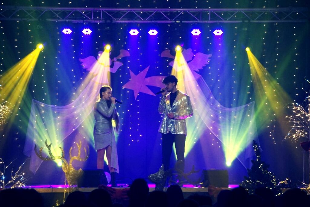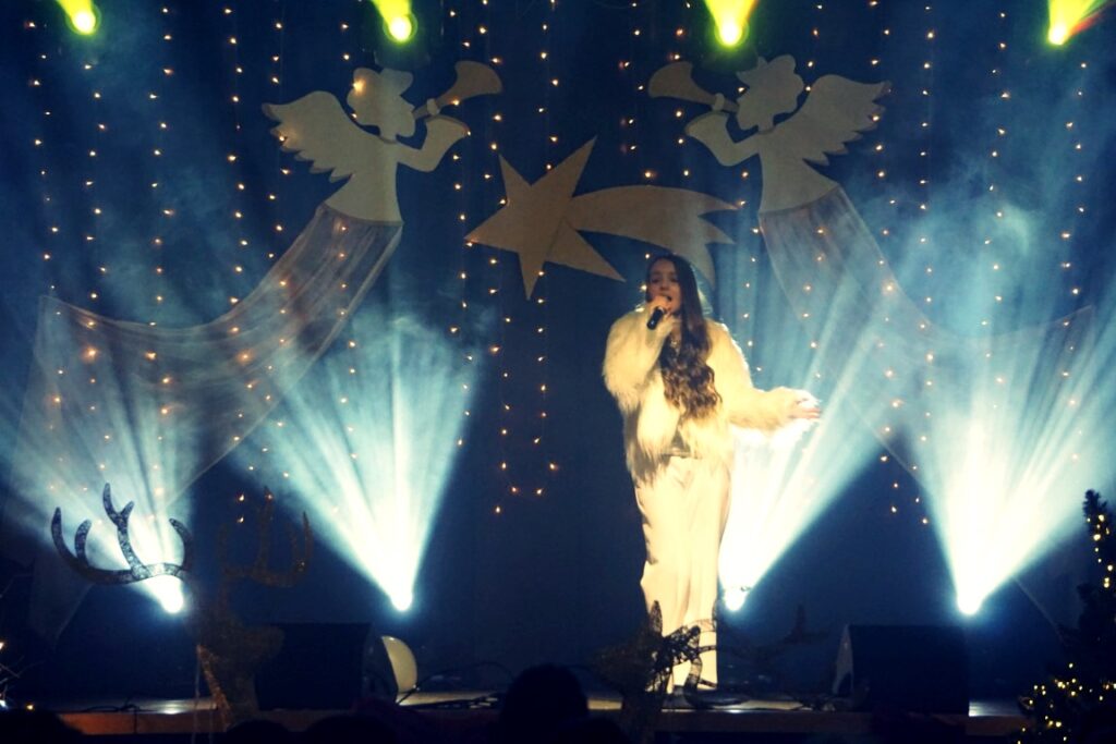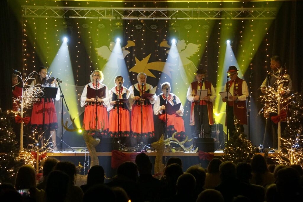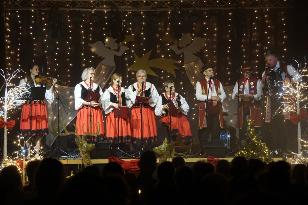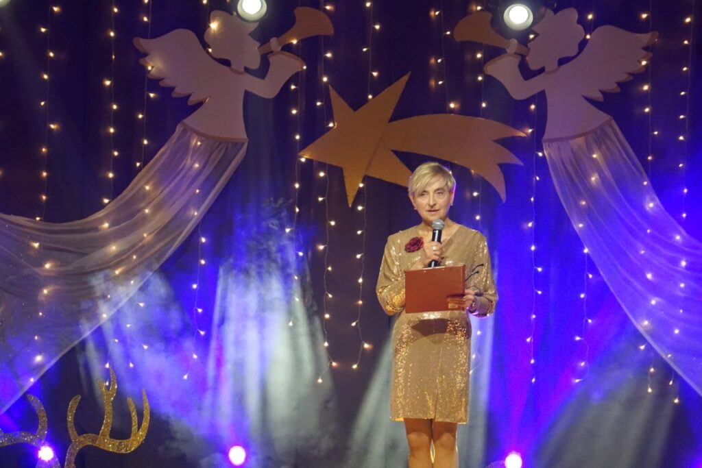 Okres Bożego Narodzenia i progu Nowego Roku to czas szczególny – pełen światła, ale też refleksji. Dyrektor BiCK R. Brzezińska powitała publiczność, życząc zdrowia, pomyślności oraz odwagi do budowania relacji i otwartych serc na to, co przynosi los. Życzyła, by nikt w nadchodzącym roku, nie czuł się samotny. Kultura to znacznie więcej niż tylko muzyka płynąca ze sceny czy prezentowanie dorobku artystów. Proponowane wydarzenia kulturalne, to przede wszystkim, spotkania z drugim człowiekiem. To czas, w którym wspólnie dzieli się wzruszenie. To uśmiech i wymiana spojrzeń po usłyszeniu ulubionej melodii. To poczucie, że jest się częścią wspólnoty. Centrum Kultury staje się, nie tylko, miejscem rozrywki, ale przestrzenią, w której każdy jest oczekiwany i nikt nie pozostaje anonimowy. Pani Dyrektor zaprosiła publiczność do wspólnego śpiewania i przeżywania tego wieczoru.