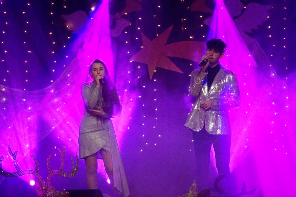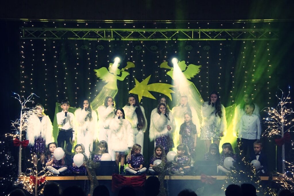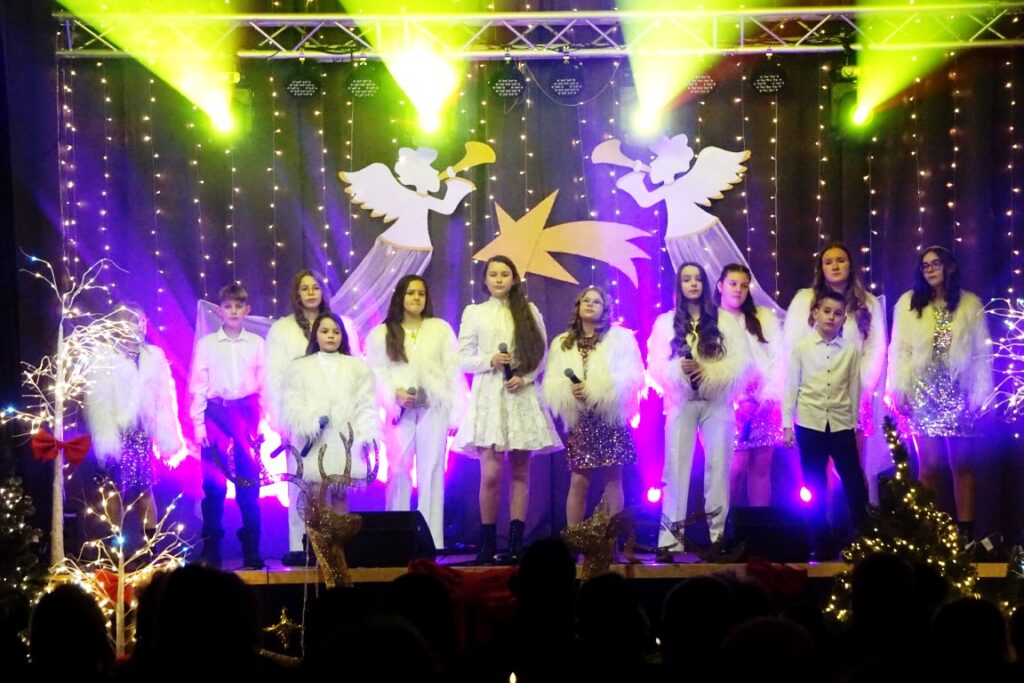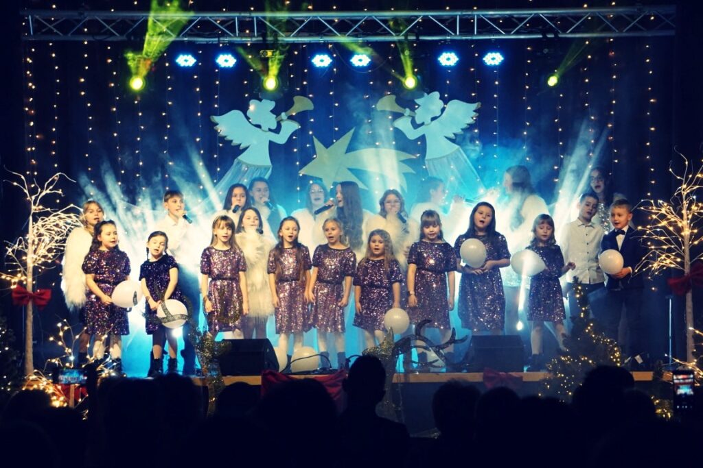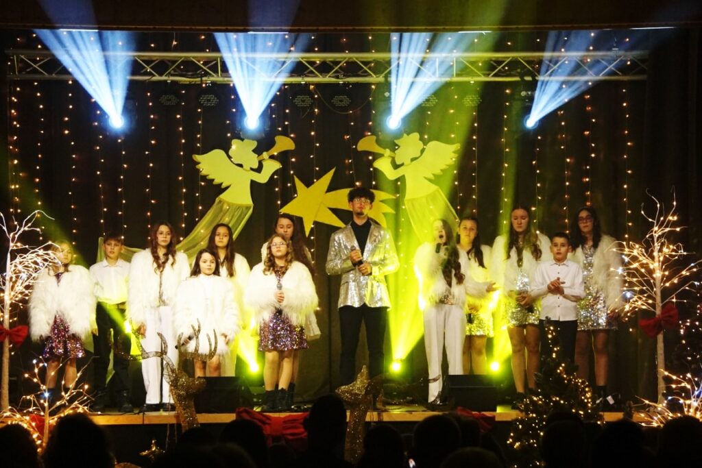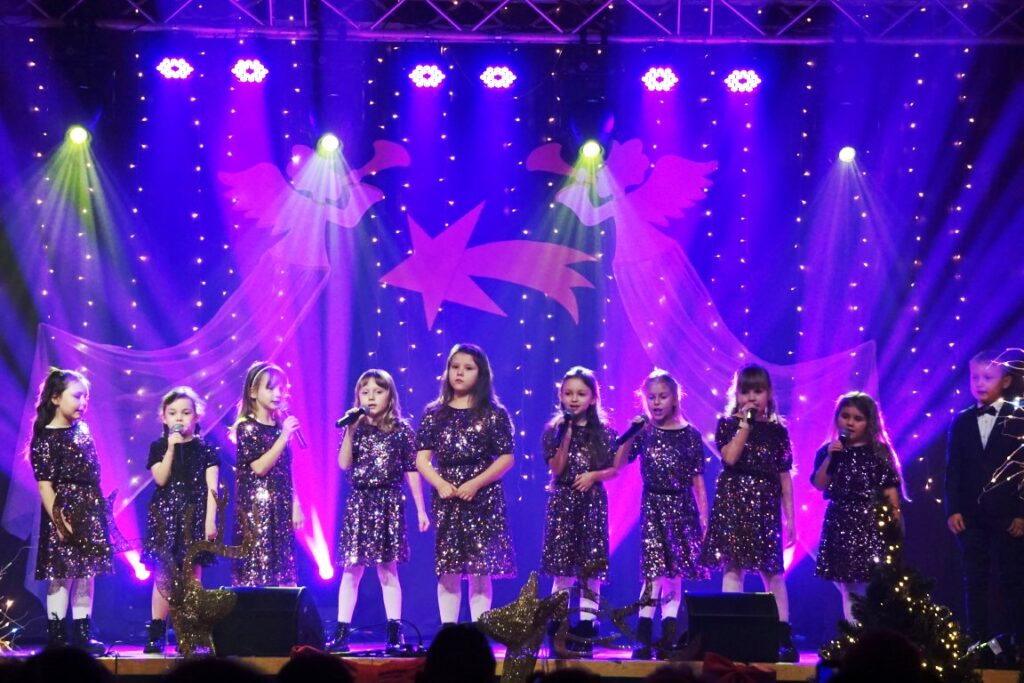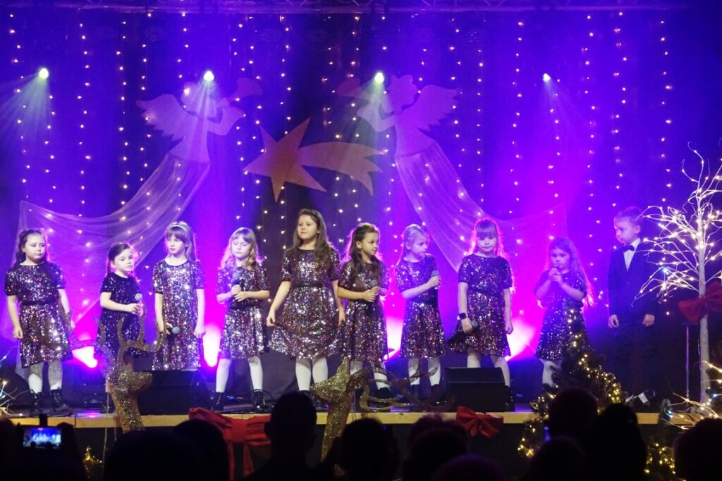 W koncercie udział wzięli młodzi artyści, pod kierunkiem instruktor Elżbiety Moska: Zespół Szyk, Zespół Szyk Mini, Alicja Janik, Pola Janik, Kalina Pieróg, Amelia Gładyszewska i Fabian Kiciński, którzy mają na swoim koncie wiele sukcesów, prezentując się na konkursach wokalnych o zasięgu wojewódzkim, ogólnopolskim i międzynarodowym. W pierwszej, zimowej części koncertu wybrzmiały utwory: „Zima lubi dzieci”, „Na całej połaci śnieg”, „Feliz Navidad”…W drugiej części publiczność usłyszała kolędy i pastorałki takie jak: „Veni, Veni Emmanuel”, „Kolęda o ludzkim zrozumieniu”, „Gore gwiazda” i wiele innych.