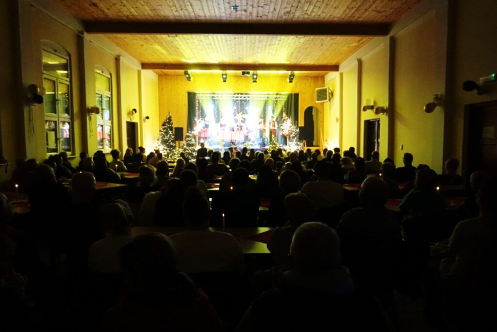 W sobotnie popołudnie 10.01.26 miał miejsce Zimowy Koncert Kolęd i Pastorałek. Sala widowiskowa wypełniła się po brzegi, choć na dworze panował siarczysty mróz. Na sali udekorowanej choinkami, błyskającymi światełkami, publiczność zajmowała miejsca przy odświętnie nakrytych stołach. W uroczystości uczestniczył Burmistrz Gminy Bartłomiej Wróbel z małżonką oraz pani Skarbnik Cz. Trautman.